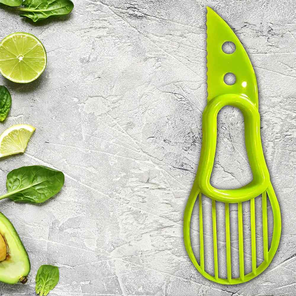 This handy avocado slicer allows you to easily peel the avocado, remove the pit, and slice it for toast, salad, sushi, and more.