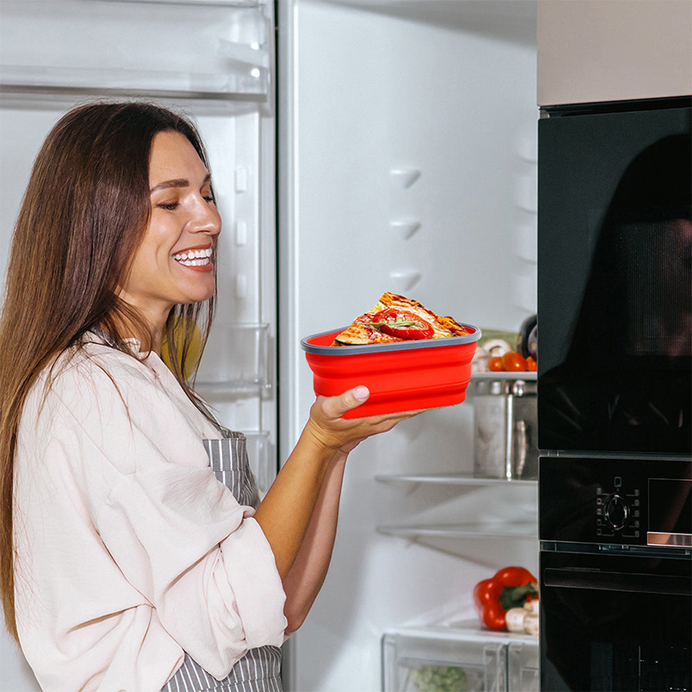 Keep your pizza fresh with a snap-on airtight lid that creates a vacuum seal, ensuring your slices taste better the next day. This collapsible container expands to fit 18” pizza slices and comes with microwavable divider trays that double as pizza plates. Ideal for storing leftover pizza without taking up the whole shelf, this container even features an optional air vent to reduce condensation.