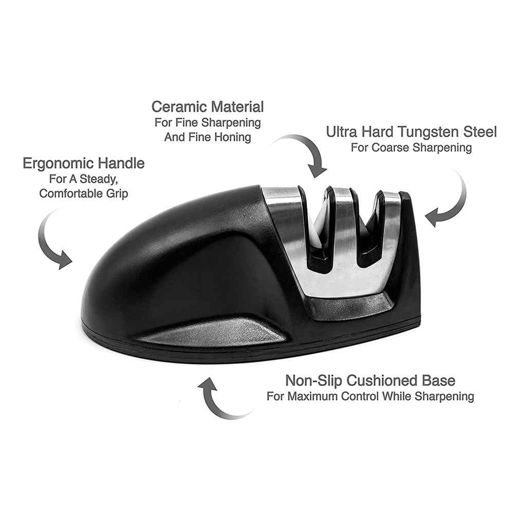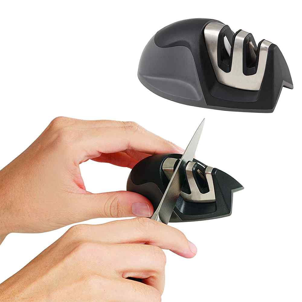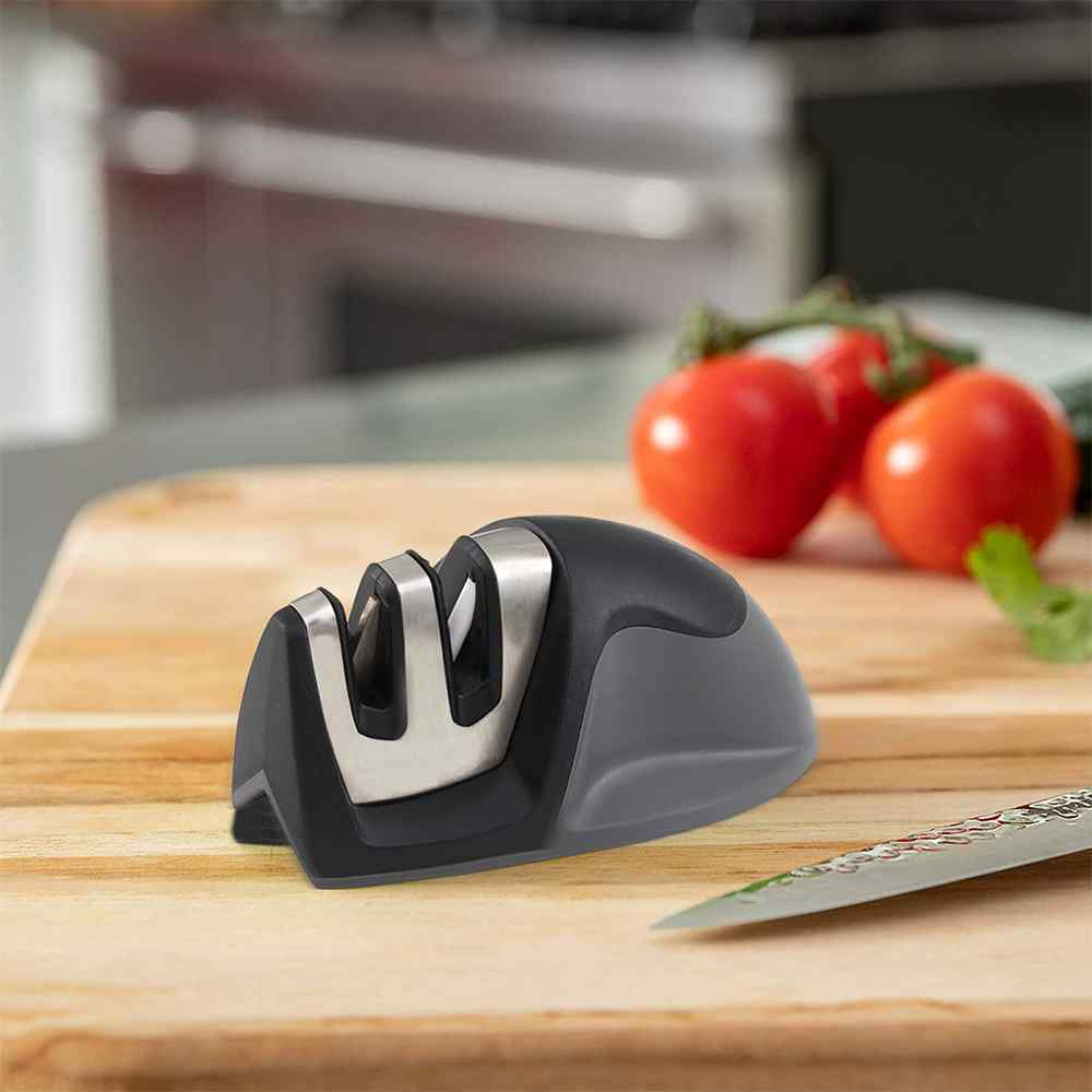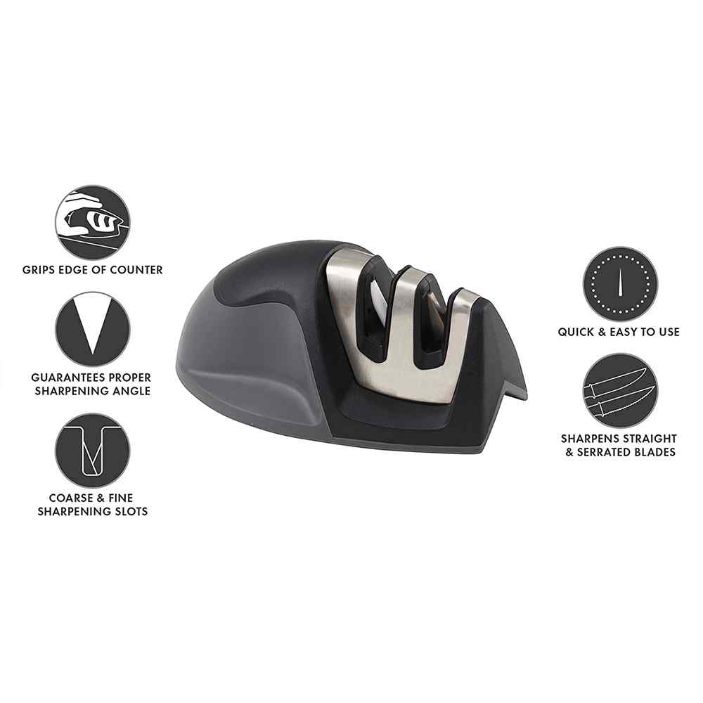 Work smarter in the kitchen by remembering to keep your knives sharp! This Dual Edge Grip Knife Sharpener can improve dull, damaged knives, as well as quickly hone and maintain knives that are already sharp. Its ergonomic, compact design makes it an ideal tool for anyone who wants to speed up prep work in the kitchen.