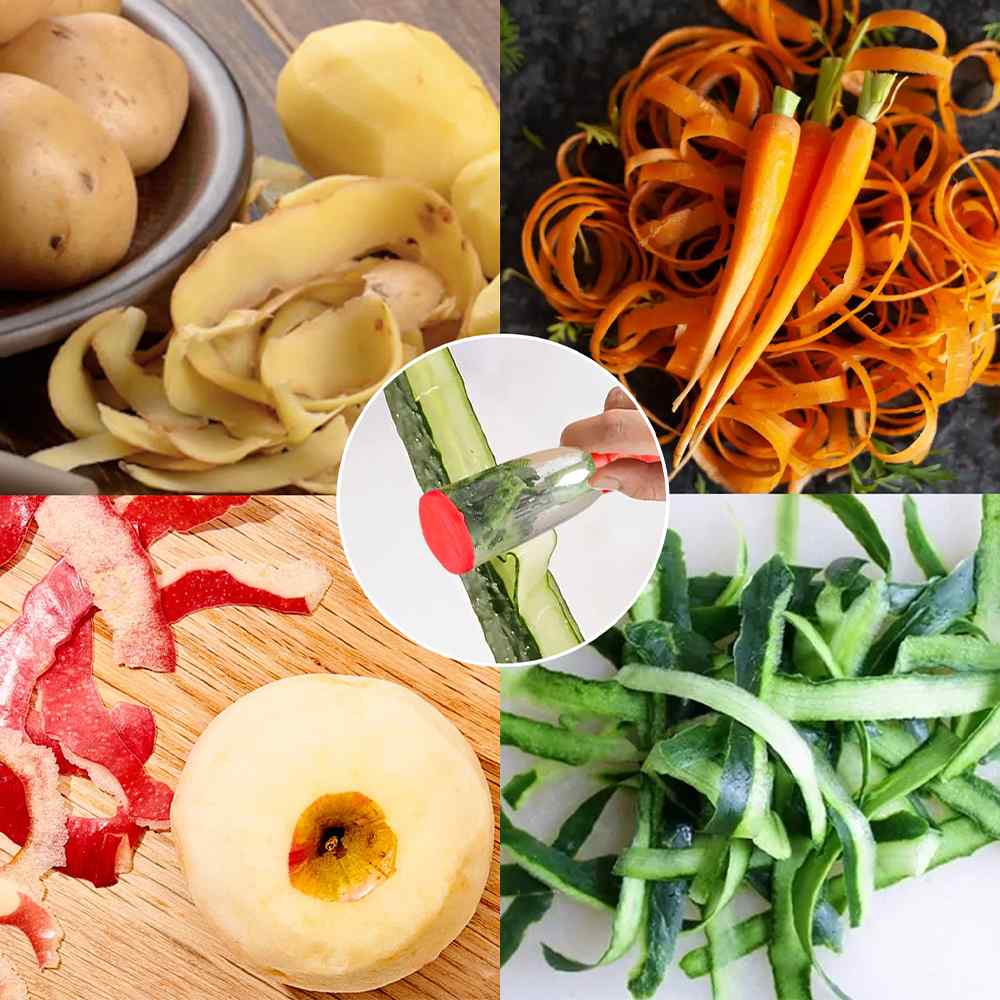 Peel a wide variety of fruits and vegetables with minimum fuss. This vegetable peeler has a stainless steel blade that easily removes the skins from potatoes, apples, cucumbers, and more. A storage box is attached, so you can keep your kitchen clean!