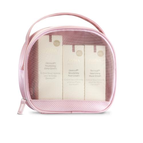 This luxurious skincare set features full sizes of Dermud™ Nourishing Foot Cream, Hand Cream, and Body Cream. Each product in this kit is enriched with a patented Dermud™ formula, incorporating 'leave on' Dead Sea mud, known for its exceptional soothing and nourishing properties. Alongside the proprietary skin activator, Osmoter™—a blend of Dead Sea minerals, these creams deliver intensive hydration and relief.