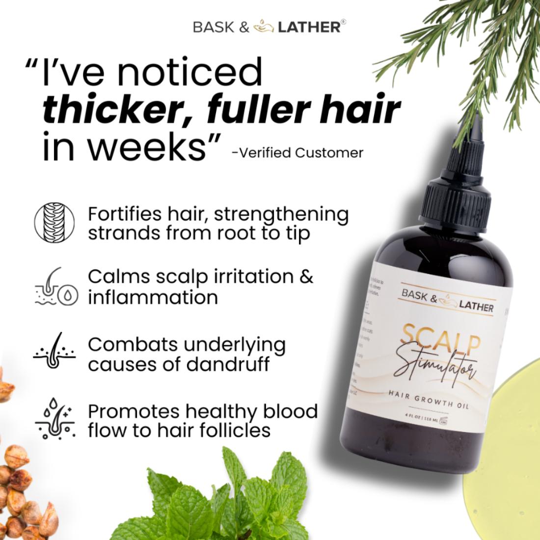Elevate your hair care journey with Scalp Stimulator. This nutrient-rich, toxin-free oil blend is formulated to soothe irritation, reduce dandruff, and boost optimal blood flow to the roots. Paired with scalp massages, it works to strengthen strands for thicker, healthier growth from root to tip.