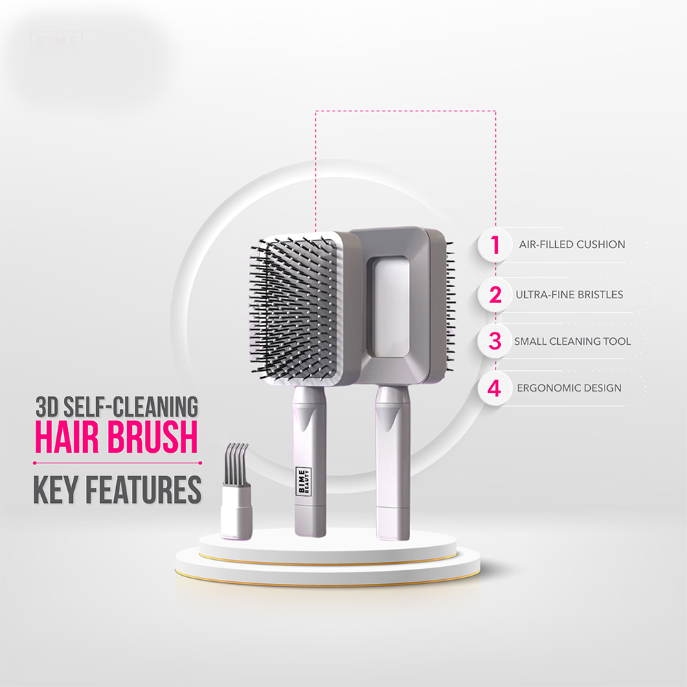 The 3D Self-Cleaning Deluxe Rectangular Hair Brush is a gentle, glide-through brush designed to remove knots without discomfort while helping maintain smooth, frizz-controlled hair. Its unique arched cushion, flexible bristles, and built-in cleaning tool make it a convenient everyday staple for anyone who wants effortless detangling with less stress on the hair and scalp.