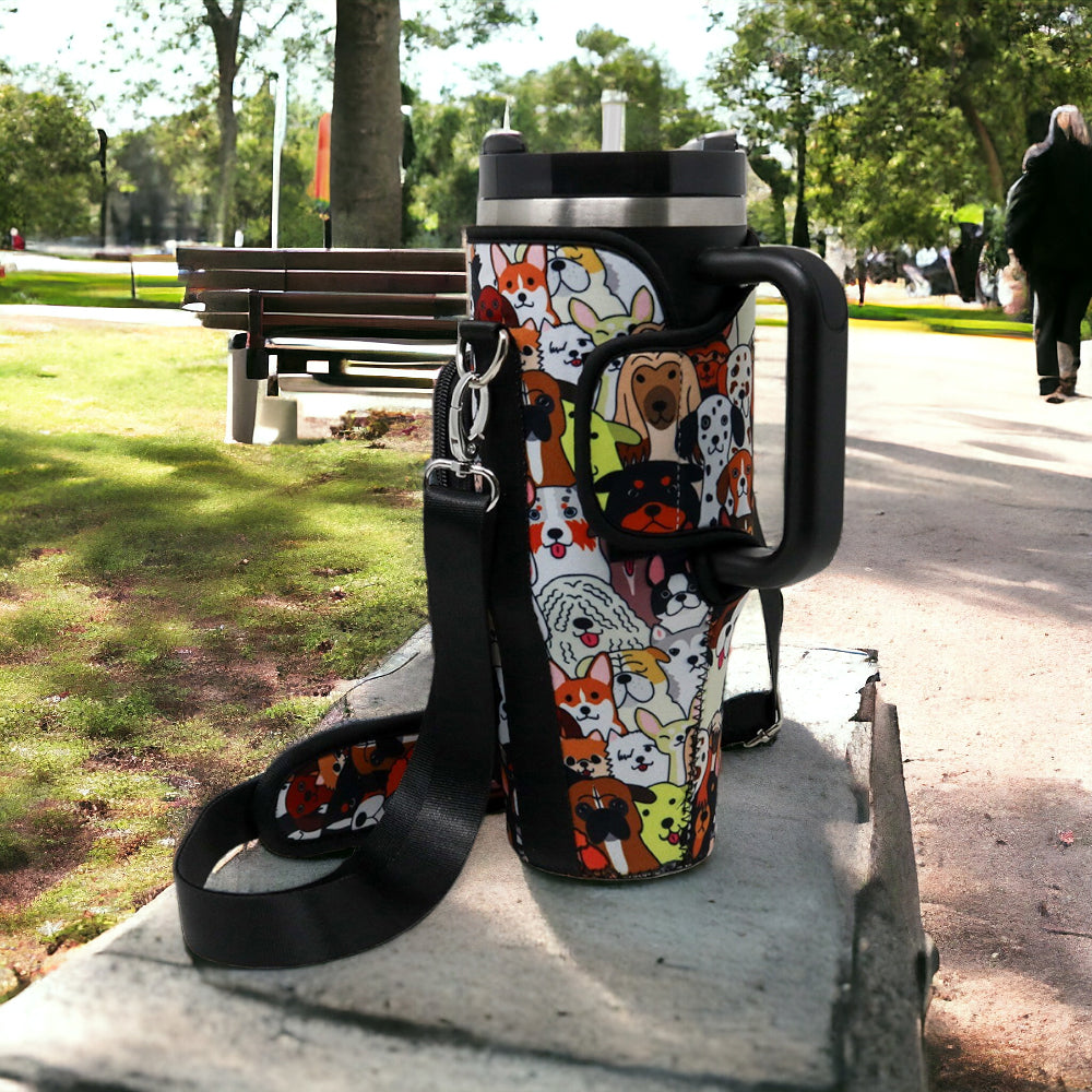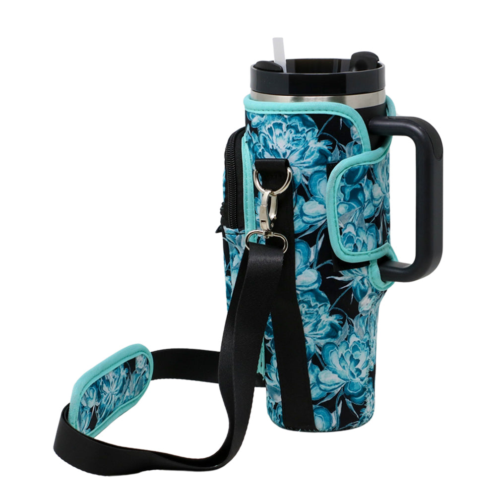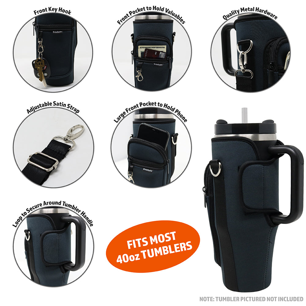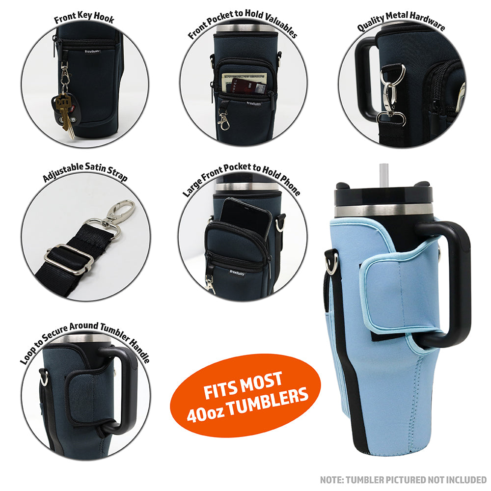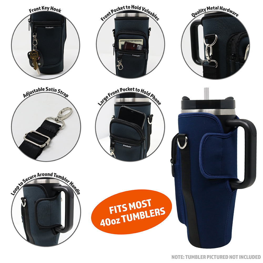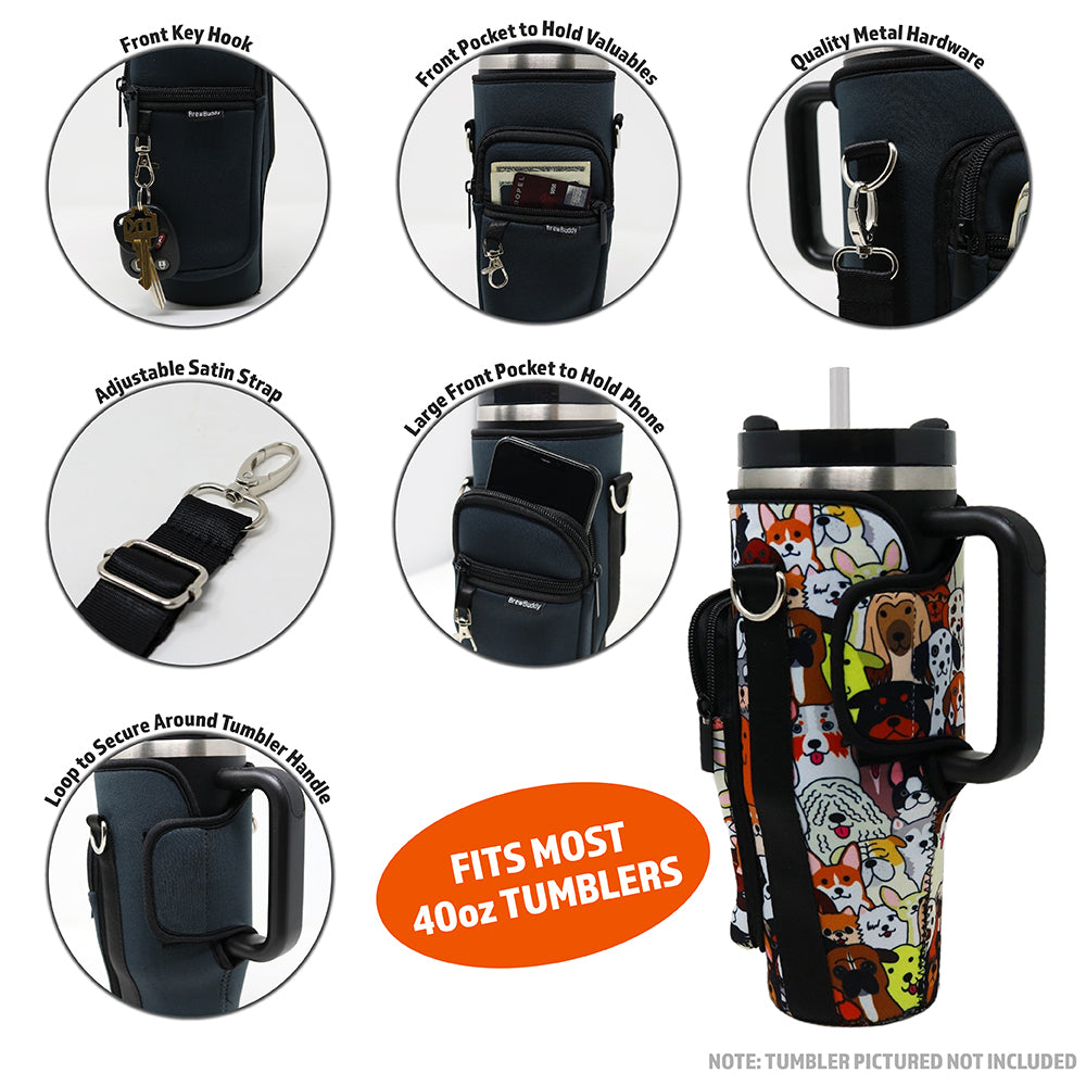 Easily carry your favorite 40 oz tumbler with this unique crossbody sling bag, designed to keep your hands free and your valuables safe. It’s equipped with two front zipper pockets and an adjustable satin strap for a convenient, customized fit.