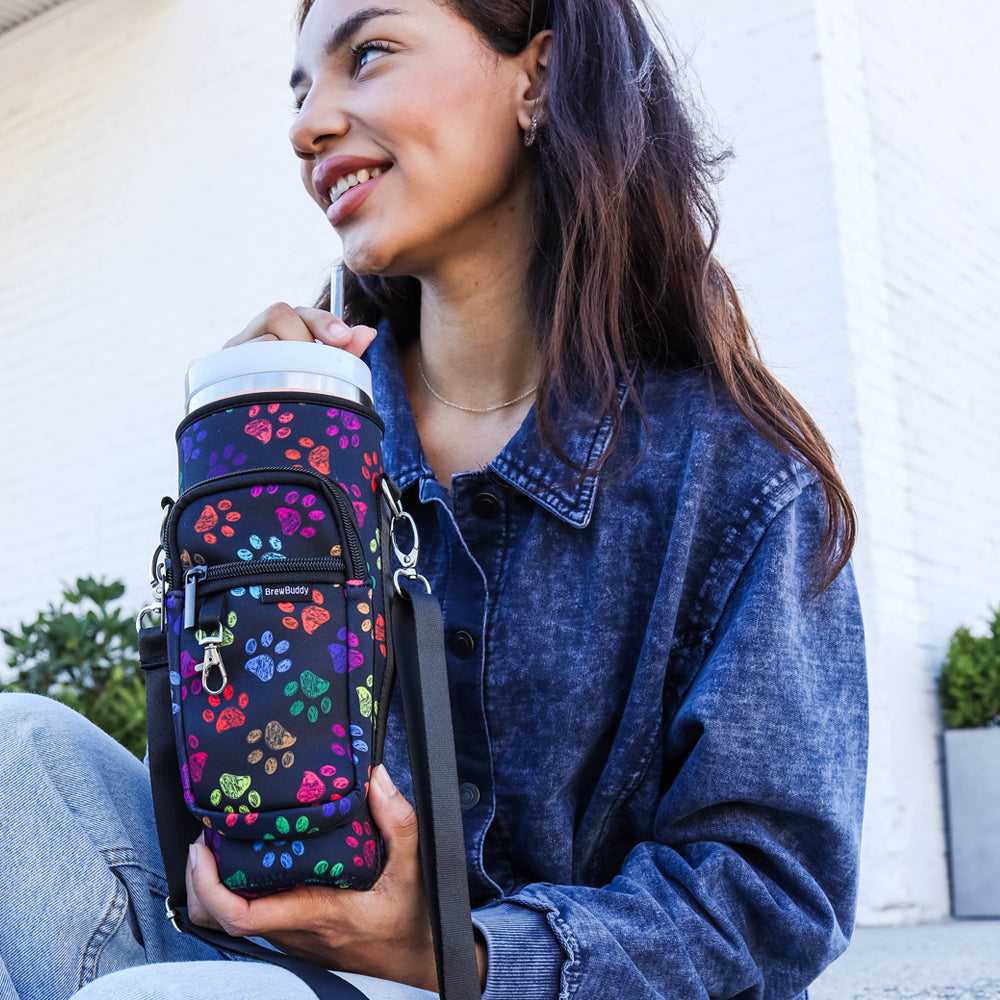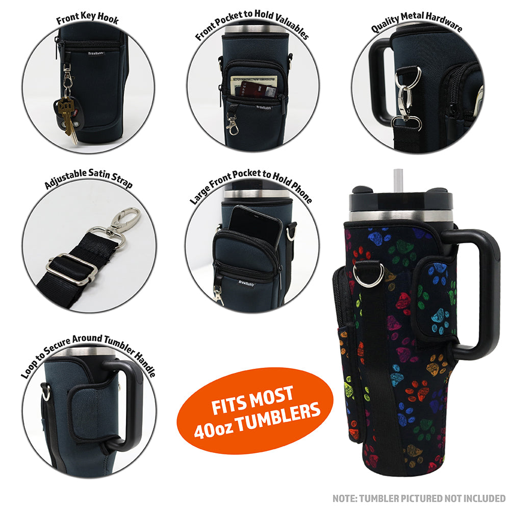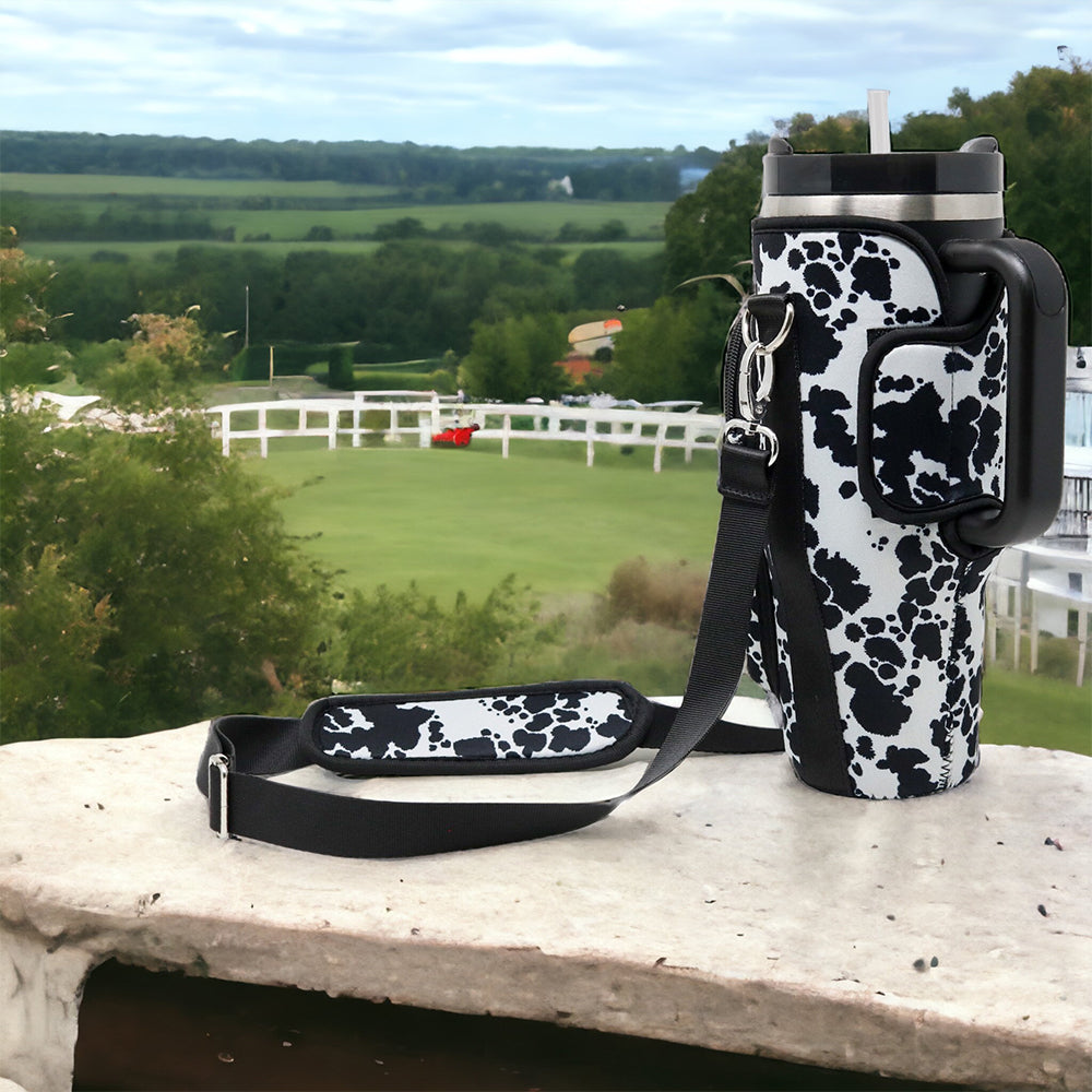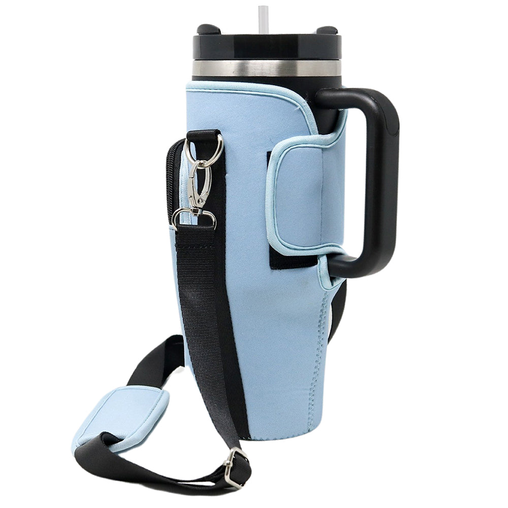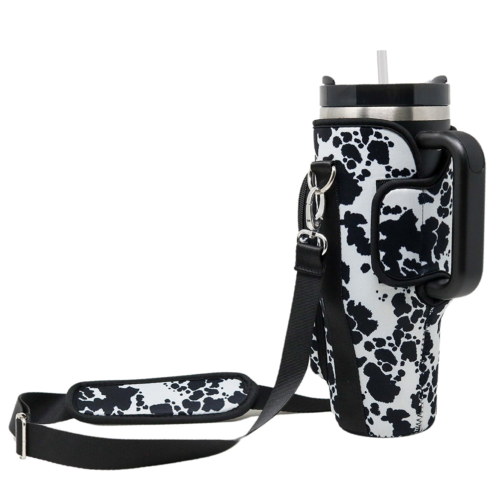Easily carry your favorite 40 oz tumbler with this unique crossbody sling bag, designed to keep your hands free and your valuables safe. It’s equipped with two front zipper pockets and an adjustable satin strap for a convenient, customized fit.