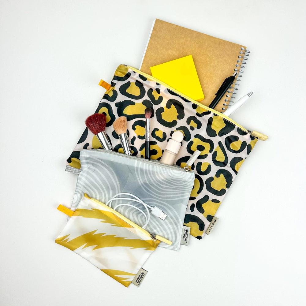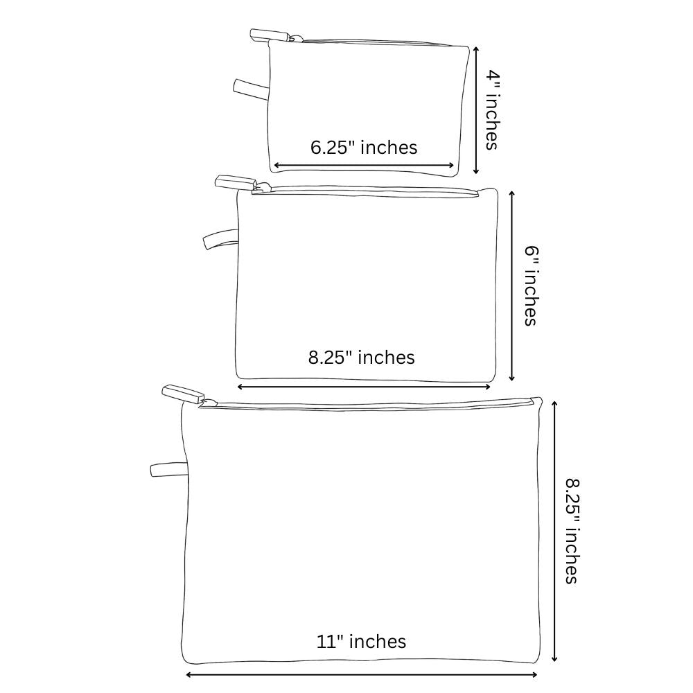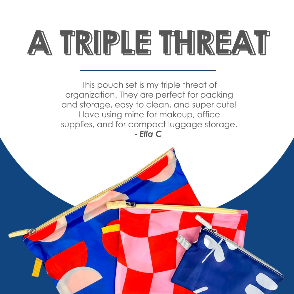 Store and travel in style! This pouch set is ideal for storing and packing everyday essentials for travel and home. Made from durable yet lightweight polyester, these zipper pouches are great for everyday shopping, luggage packing, household storage, and more.