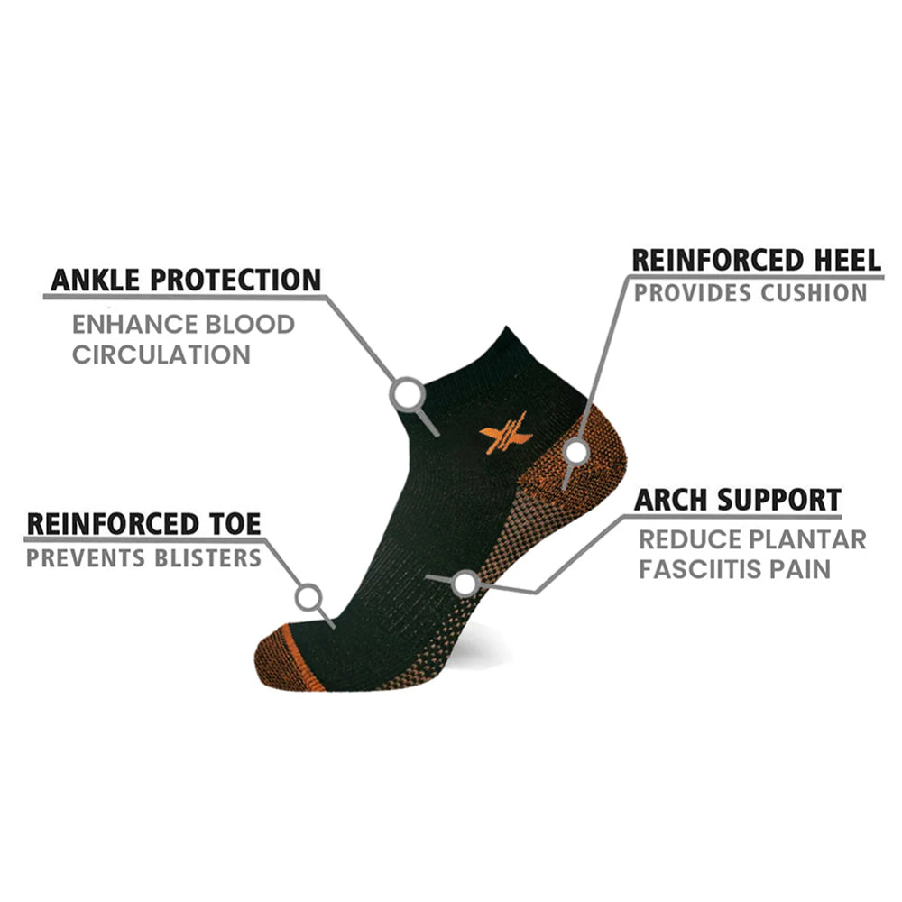 These ankle-length compression socks are the ideal companion for active lifestyles or everyday wear. Infused with copper to help draw blood flow to the feet during exercise, these socks work to reduce swelling and fatigue. They also offer antimicrobial properties, helping ensure a comfortable, rejuvenating experience for your feet.