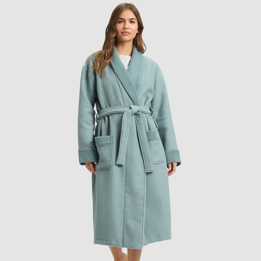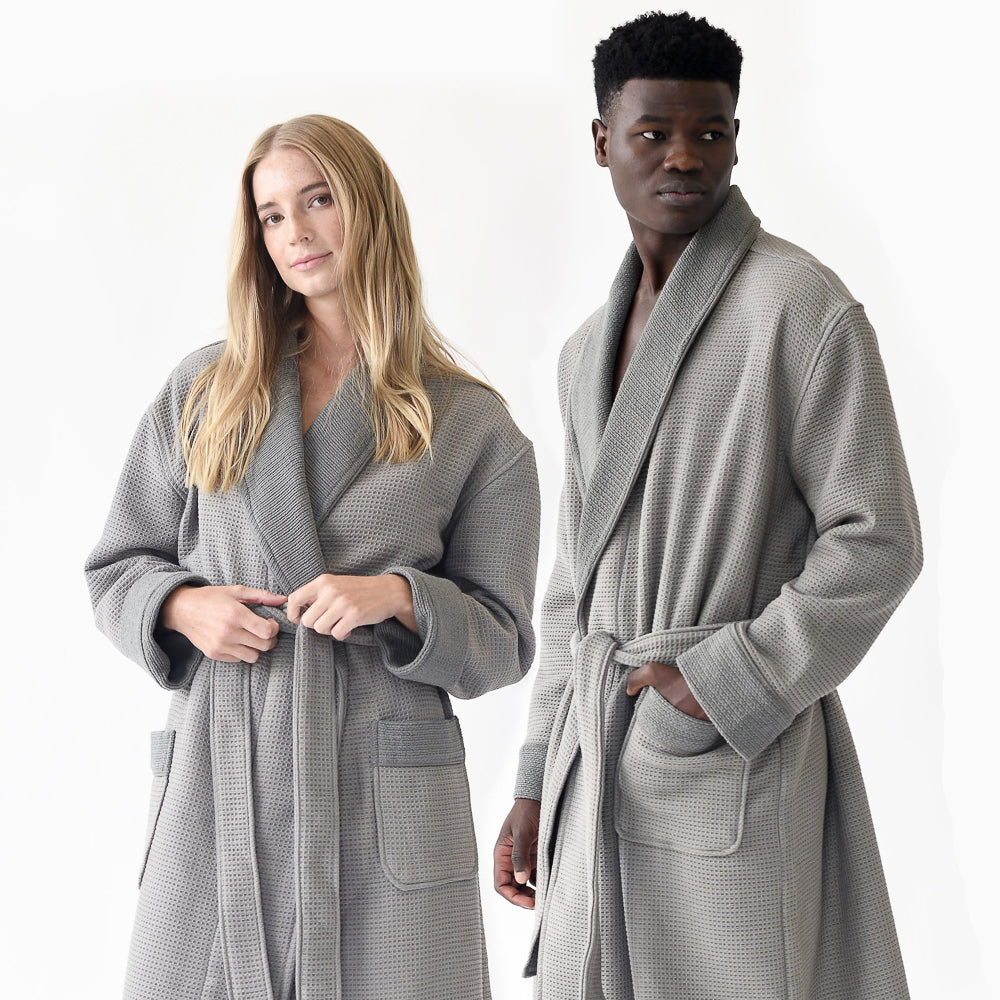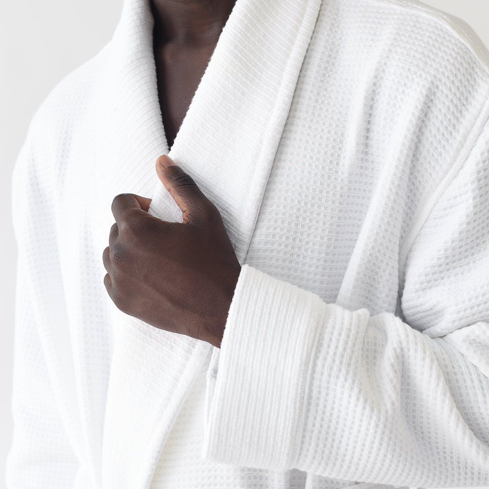 Wrap yourself in spa-like luxury with the Waffle Bathrobe. Featuring dual-sided texture, the ultra-absorbent outer waffle weave is balanced out by the inner softness of ribbed terry. This robe is sure to be your new favorite part of getting ready.