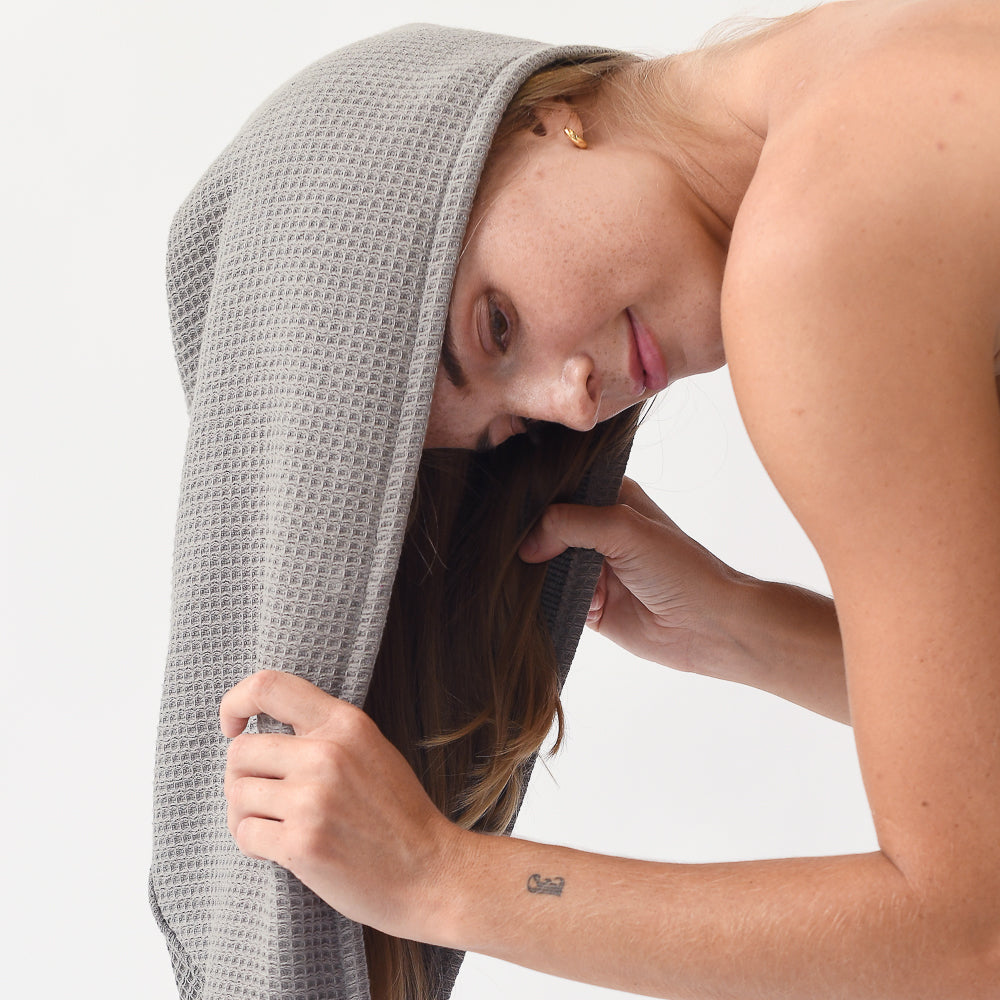Elevate your post-shower routine with the Waffle Hair Towel. This hair wrap helps dry your hair and keeps it out of your face while getting ready, making it a convenient companion for your mornings.