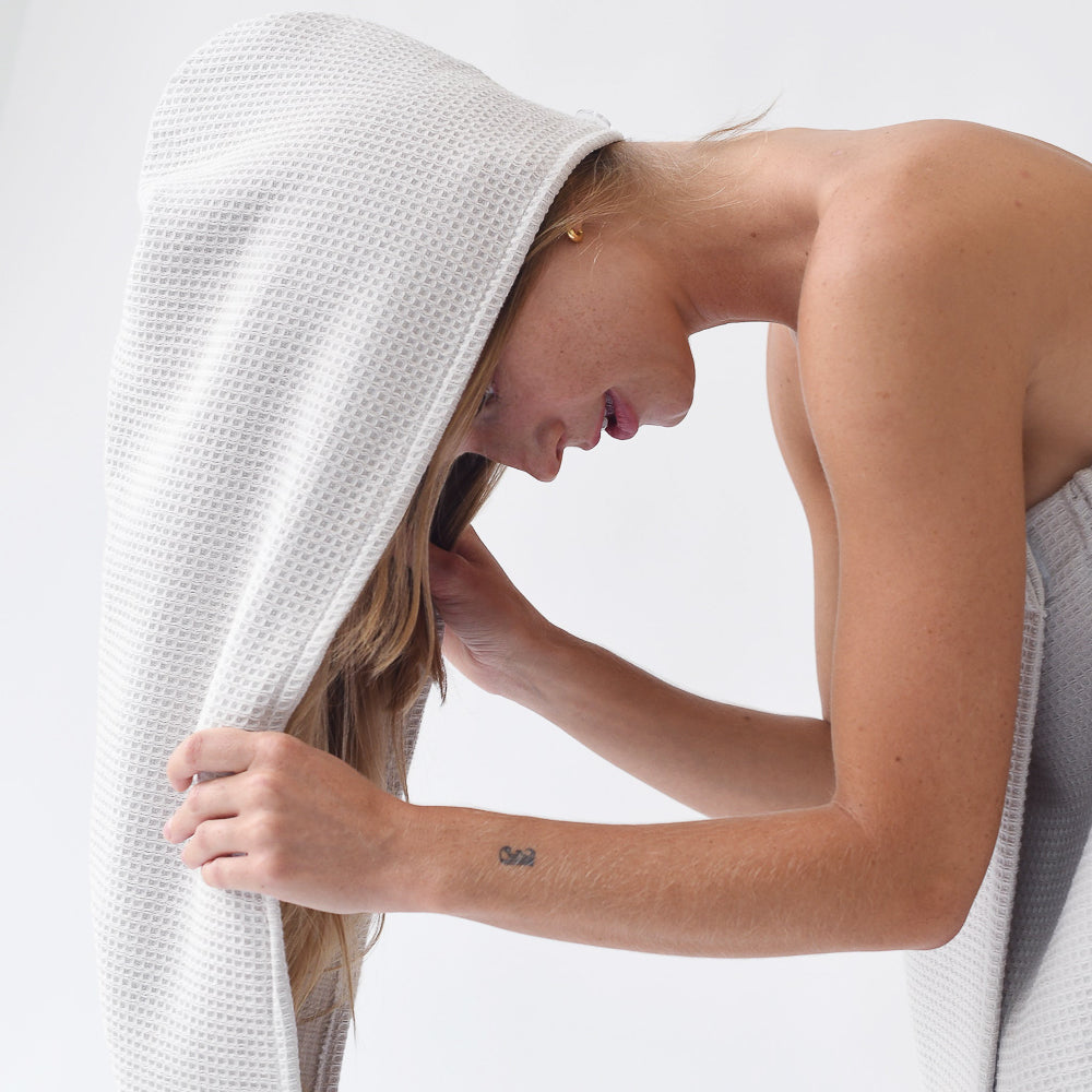 Elevate your post-shower routine with the Waffle Hair Towel. Featuring a dual-sided texture, this hair wrap helps dry your hair and keeps it out of your face while getting ready, making it a convenient companion for your mornings.