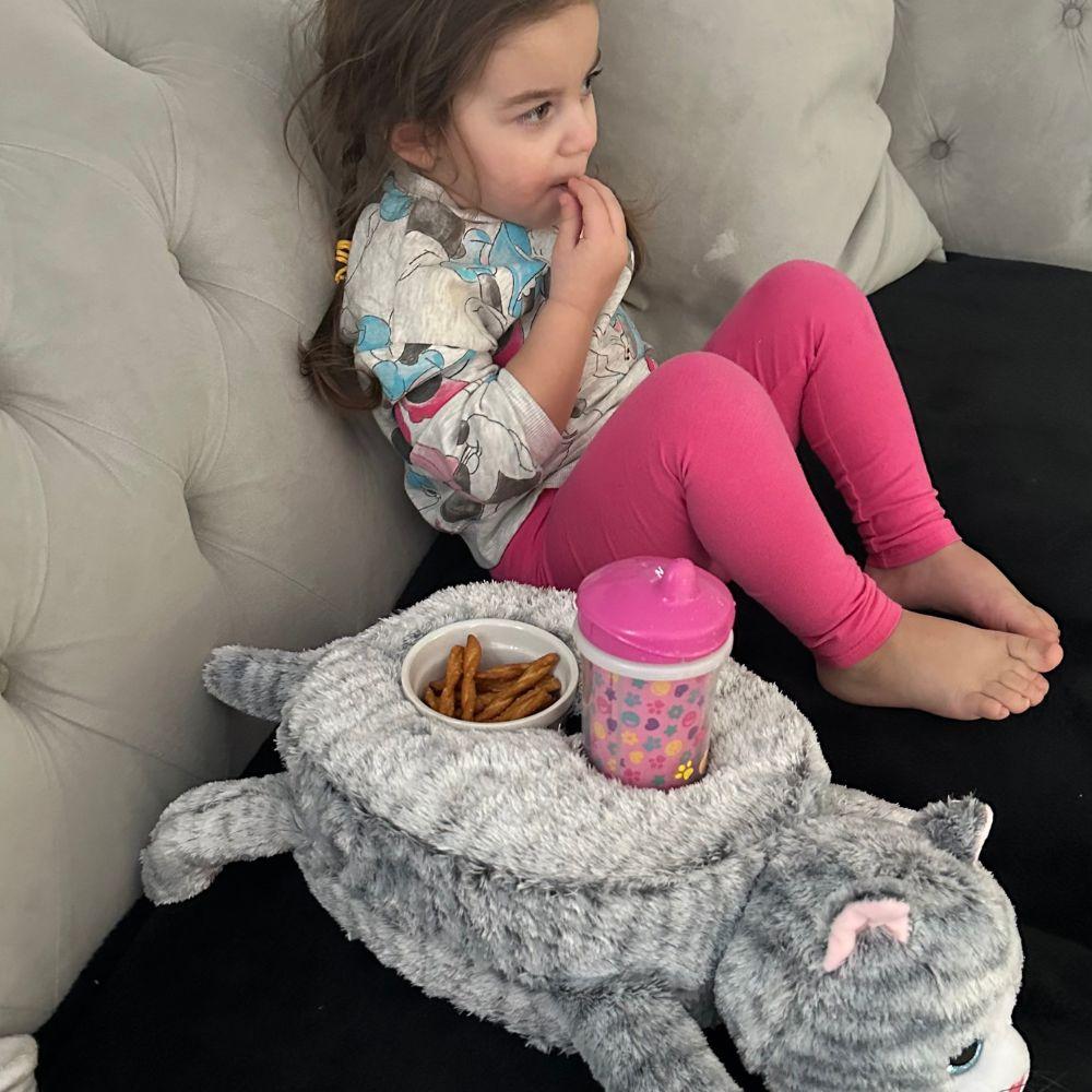 The Cozy Critter Cup Holder is a fun, adorable plush cup holder that keeps your drinks close and safe from spills. With all the benefits of the original Cup Cozy Pillow, it can also hold small essentials like snacks, glasses, remotes, cell phones, and tablets. Use it anywhere—on the couch, in the car, in bed, at the beach, or in the park.