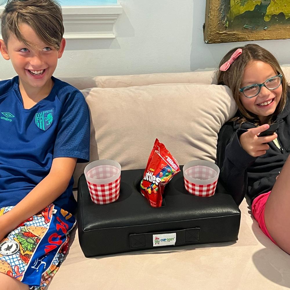 Cup Cozy Pillow created the concept of the "pillow cup holder"—a soft, cushion-style cup holder with expandable cup holes that adapt to almost any size/style of cup or mug. Now you never have to ask "Where am I going to put my drink?"