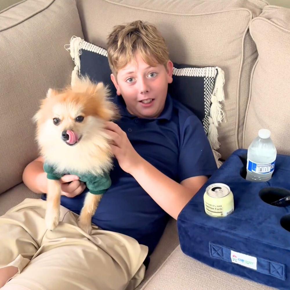 This Cup Holder Pillow is designed to keep your drinks close and safe from spills. With adaptable foam that fits almost any cup or mug, it insulates drinks to keep them hot or cold longer. The removable, washable cover makes it easy to clean, so you can use it anywhere—from the couch to the car.