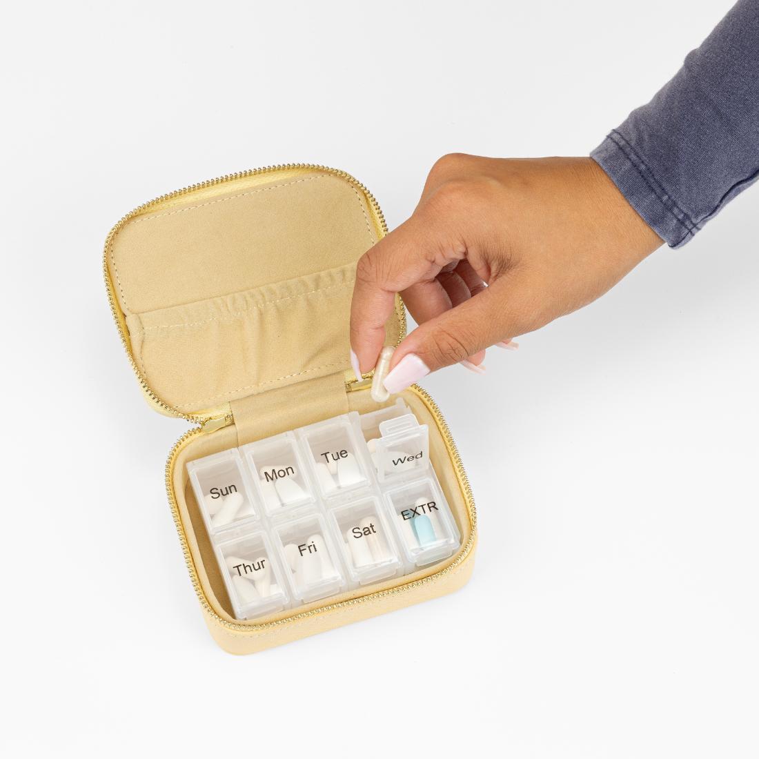 Stay on top of your health wherever you go with the Small Zip-Around Pill Organizer Case. It’s your ideal companion for daily medication management. Designed for convenience, this compact case combines function with style, fitting easily into handbags, backpacks, or luggage.