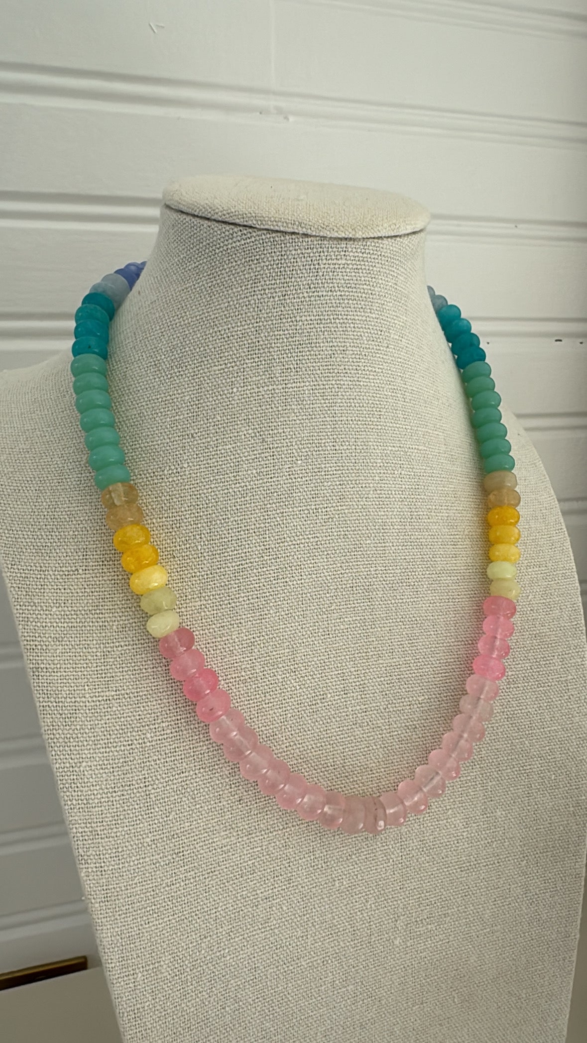 This gemstone necklace is reminiscent of the beach, summer, sunshine, good vibes, and relaxation! Wear it solo for a chic accessory or as a layering piece.