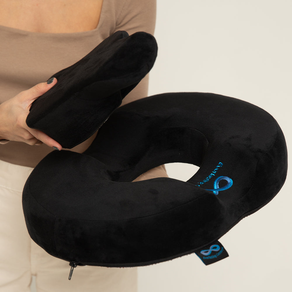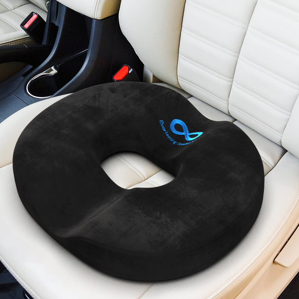The Donut Cushion is designed to help ease pressure on sensitive areas while sitting. The cutout center helps redistribute weight and adds support for long workdays or car rides. The durable memory foam maintains its shape over time to allow consistent, comfortable performance.