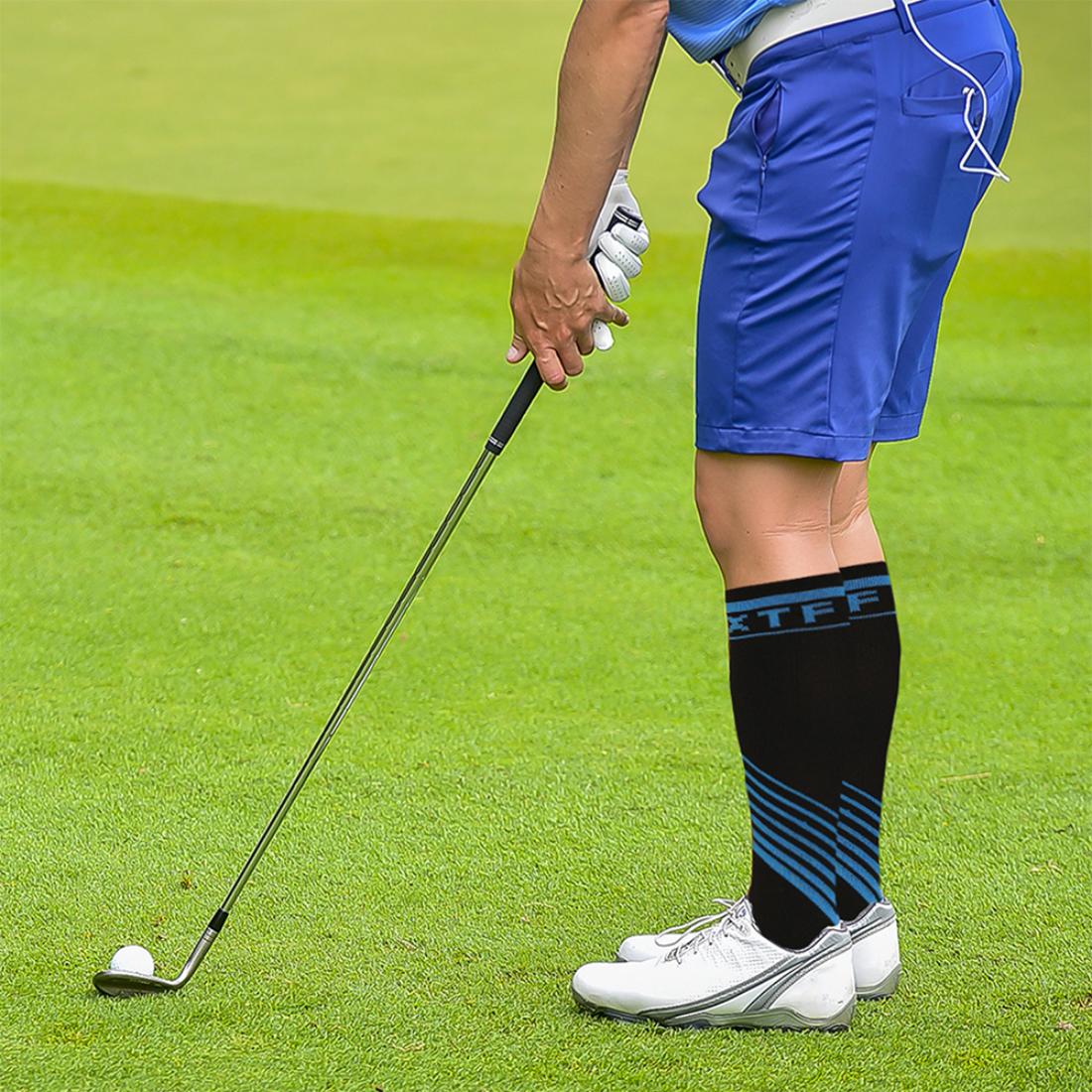 Made of moisture-wicking materials, these knee-high compression socks help improve blood circulation while alleviating swelling.