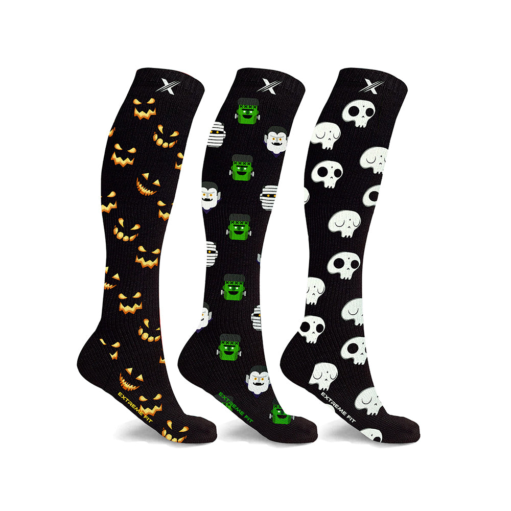 Includes three (3) pairs of Halloween Knee-High Compression Socks in size and style of your choice