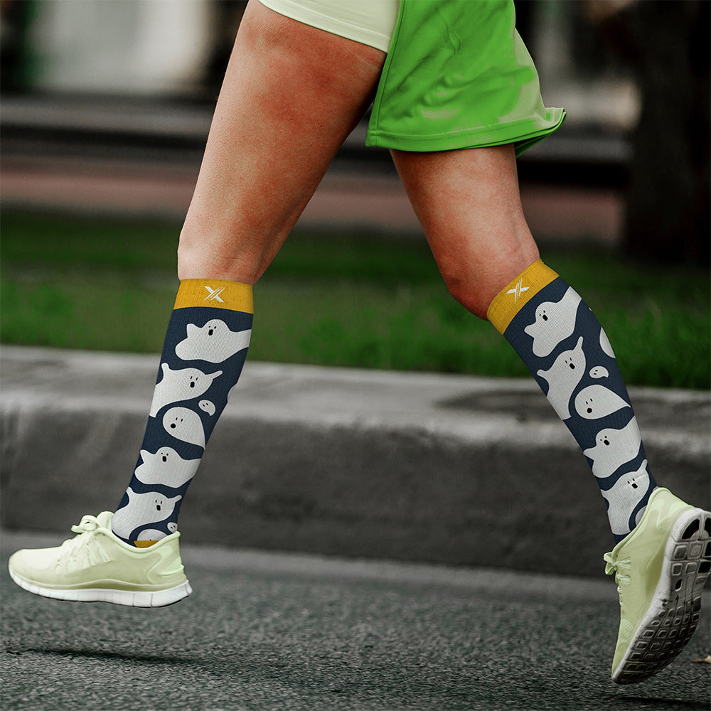 These Halloween Knee-High Compression Socks can be dress or casual socks and also make a great gift. The sole purpose of these compression socks is to help revive your tired feet and legs using advanced compression technology. So go on, pull your socks up!