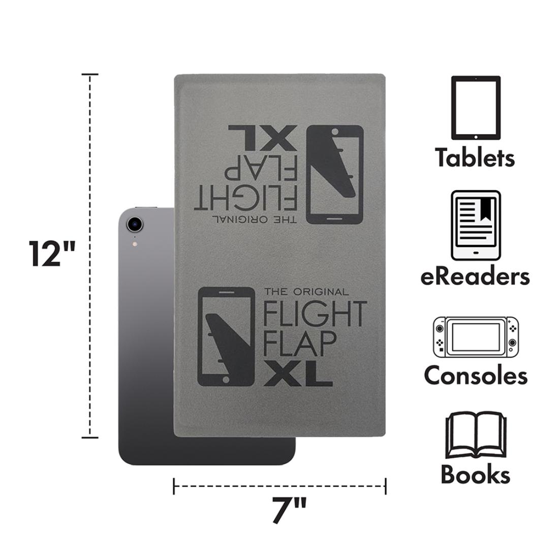 The Flight Flap XL is crafted with a durable aluminum core and cushioned with closed-cell foam to securely hold your heaviest tablet without adding bulk. Its versatile design molds to fit any tablet size, offering hours of comfortable viewing during your travels. When not in use, the XL conveniently flattens for easy stowing in your carry-on, ensuring compact portability wherever you go.