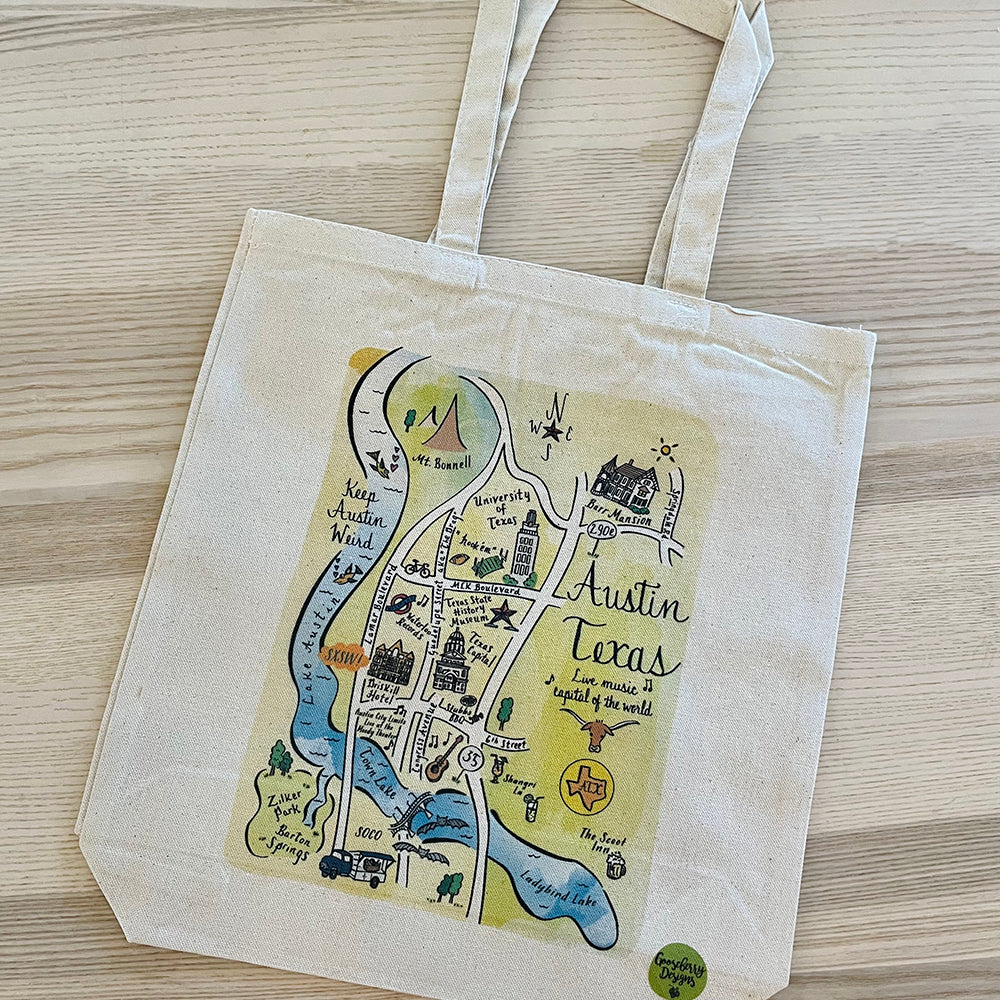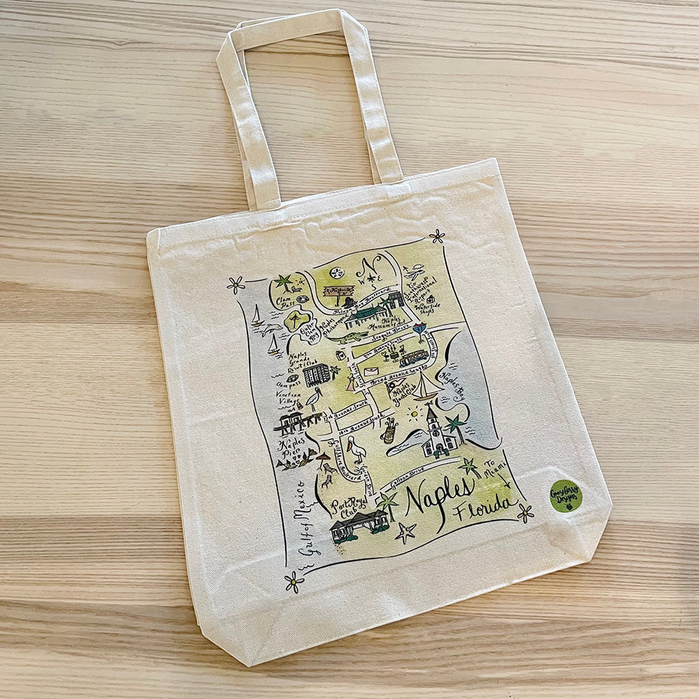 Featuring a signature hand-drawn, full-color map design, this stylish tote is made of 100% organic, natural cotton. It’s ideal for commemorating a memorable vacation, and works wonderfully as a wedding or party favor, corporate gift, or welcome bag.