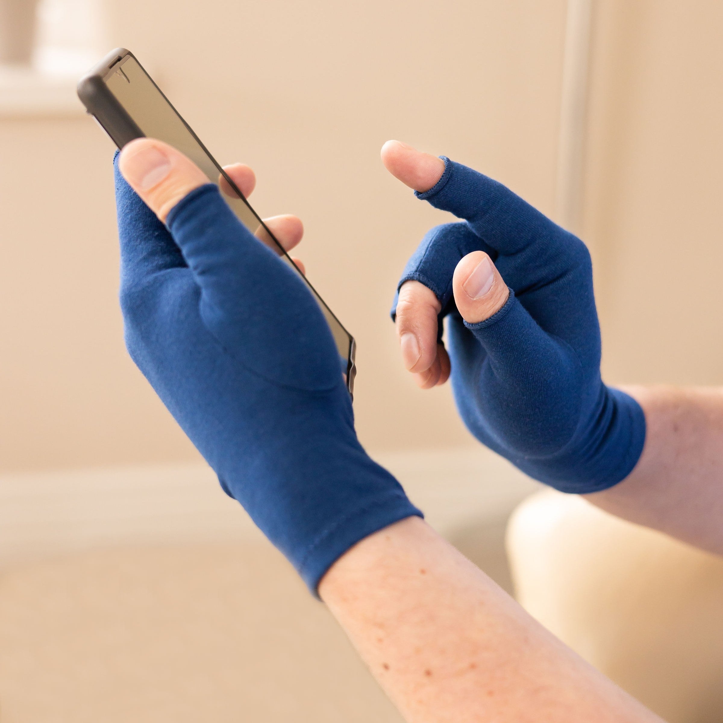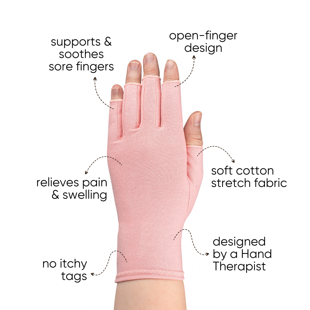 These soft, cotton-stretch Compression Gloves give a gentle hug to your hand. They support sore joints and help reduce pain and swelling, making them ideal for people living with chronic joint pain conditions like arthritis, trigger finger, or RSI.