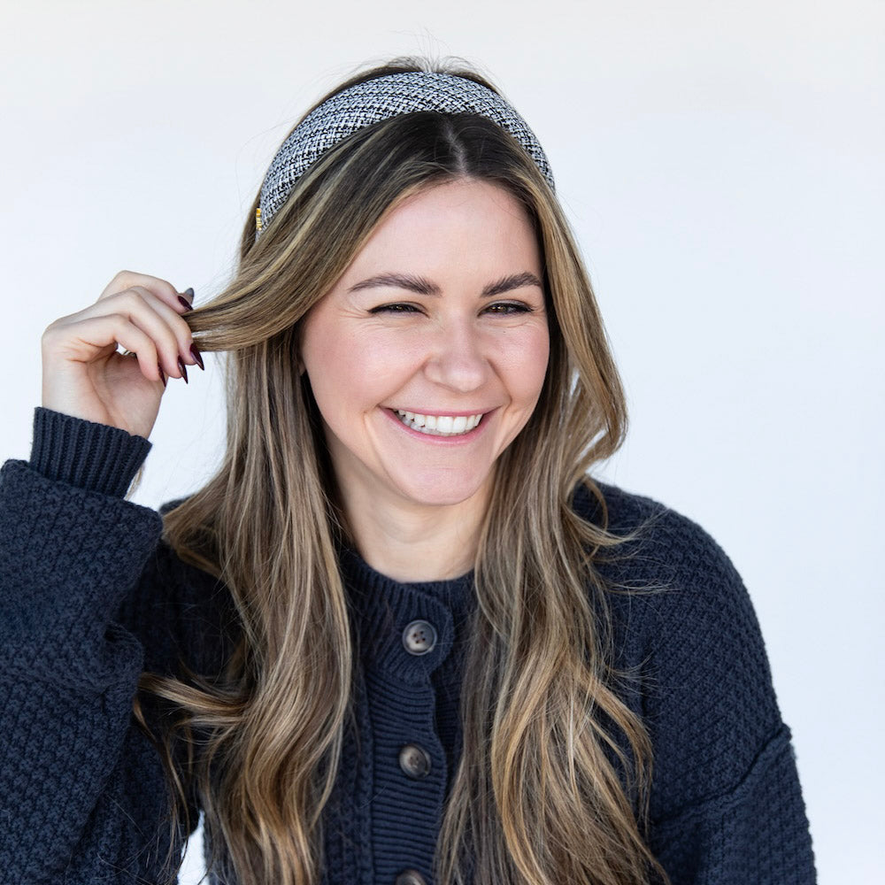 A timeless staple with subtle texture. The Classic Padded Tweed Headband features a structured silhouette wrapped in classic tweed for a polished, pulled-together look. The padded shape adds comfortable height, while the woven finish gives just enough dimension to stand out. Easy to style and endlessly versatile, it pairs as effortlessly with denim as it does with tailored layers.