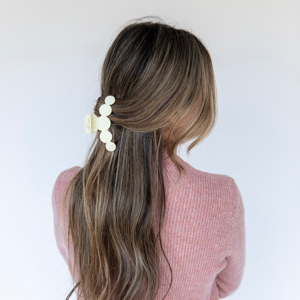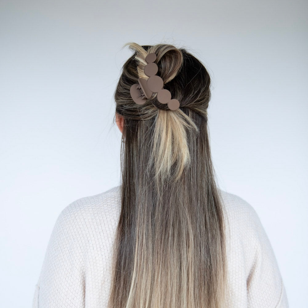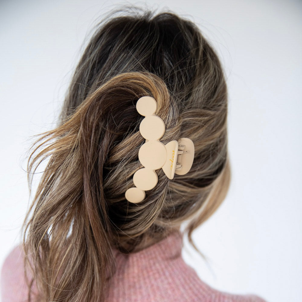 The Matte Dot Claw Clip features a clean, sculpted silhouette with rounded dot detailing for a soft yet structured look. The matte finish gives it an elevated, everyday feel, while the strong grip keeps hair secure from morning meetings to late night plans. A neutral staple designed to complement any look with effortless polish.