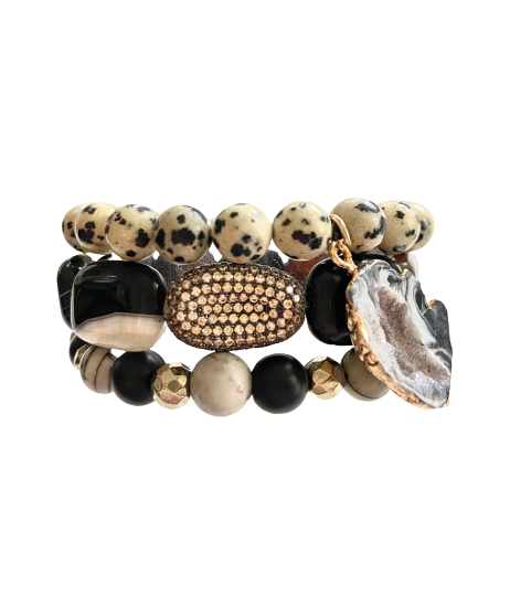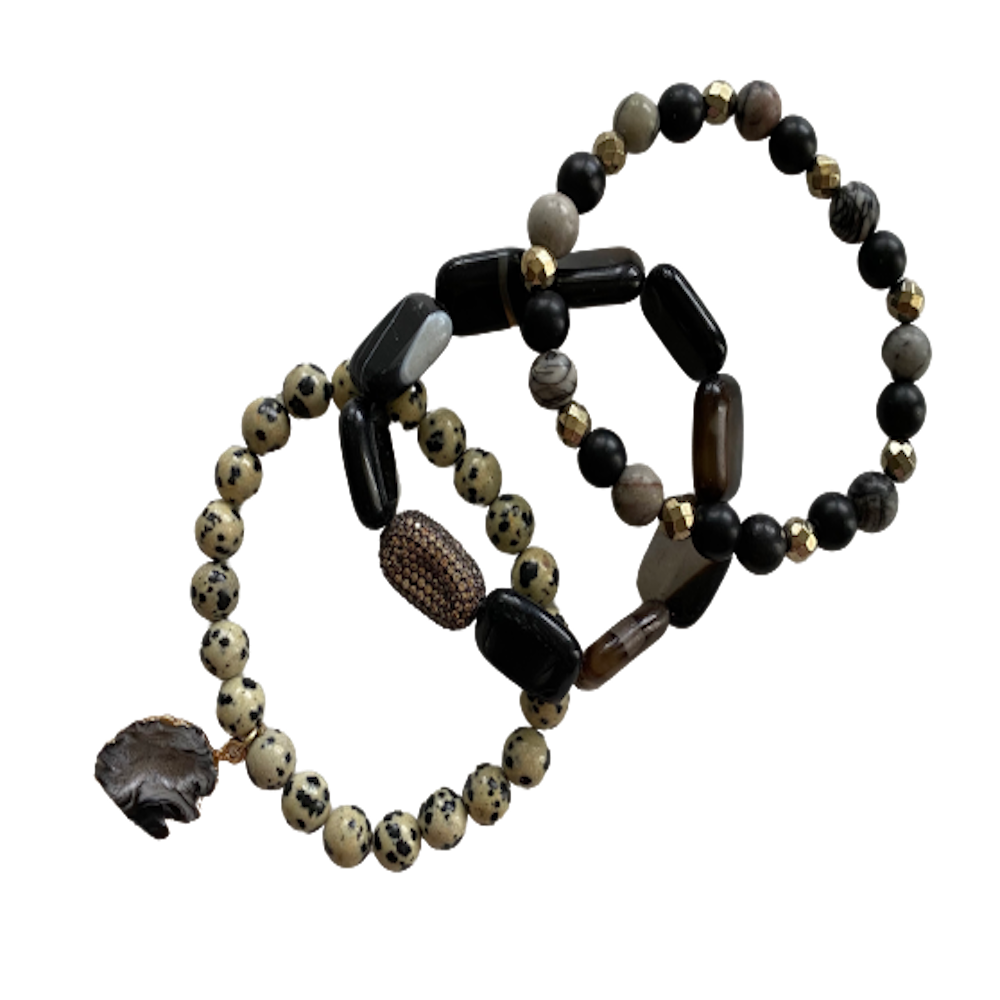 Make a statement with this bold bracelet stack! Whether you wear each piece solo or stack them together, these beautiful bracelets are sure to add an eye-catching detail to your look.