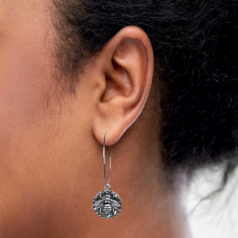 These unique hoops are sure to turn heads! Add some fun to your wardrobe with decorative bee earrings.