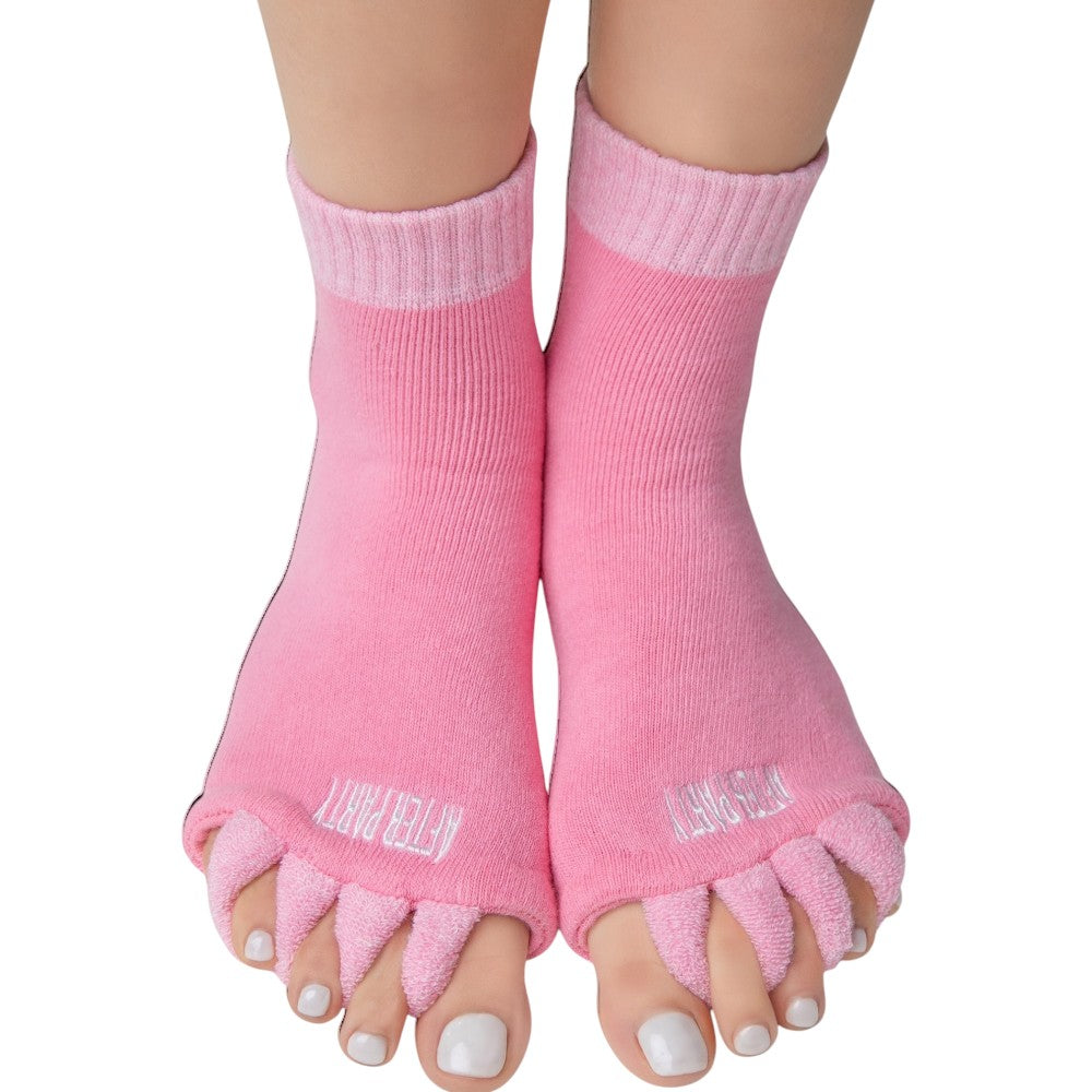 Give your feet the after party they deserve with these socks. Slip them on after a long day in heels or on your feet, and feel instant bliss as the plush cotton spacers stretch, soothe, and realign your toes. In just 20 minutes, these cozy recovery socks can help undo the damage of modern footwear—leaving your feet relaxed, refreshed, and ready to dance again.