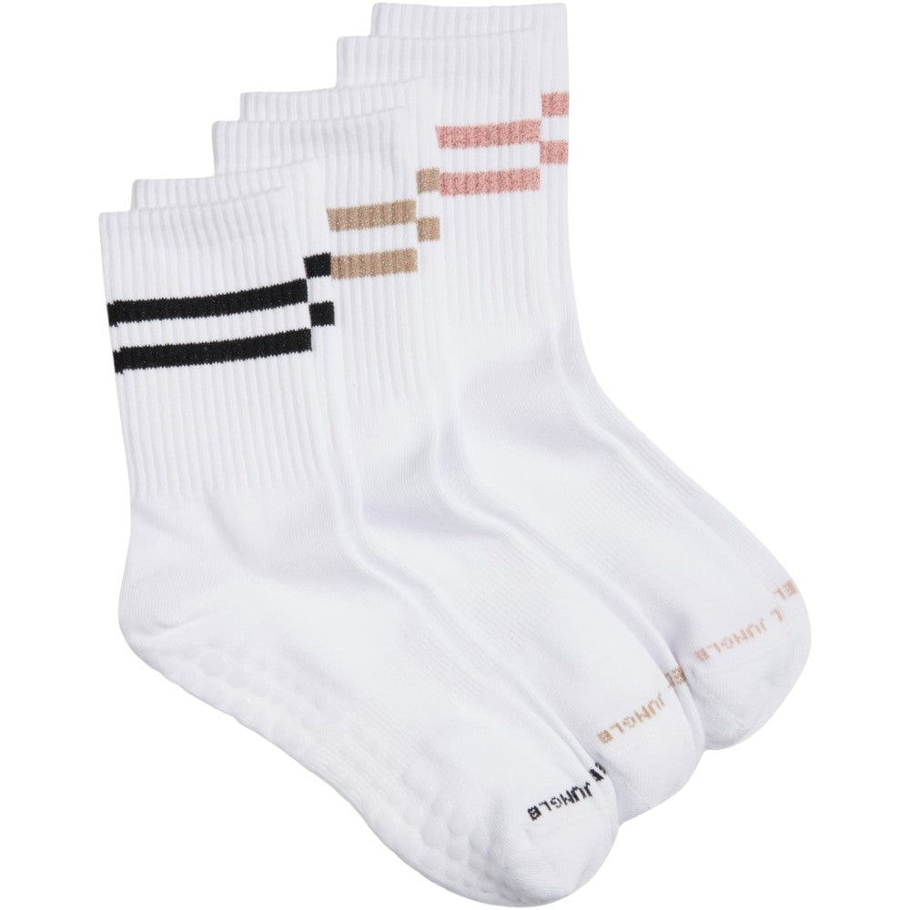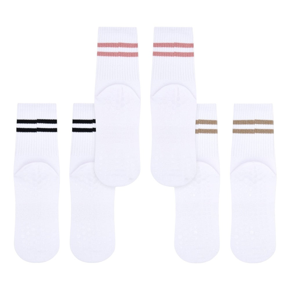 These socks are designed for Pilates and yoga lovers, by Pilates and yoga lovers. They combine a full-sole silicone grip and elevated support with a chic, stylish design. Made from quality, breathable cotton, these socks feature a seamless toe for comfort, arch support, and a ribbed ankle that provides light compression to stay in place and boost circulation.
