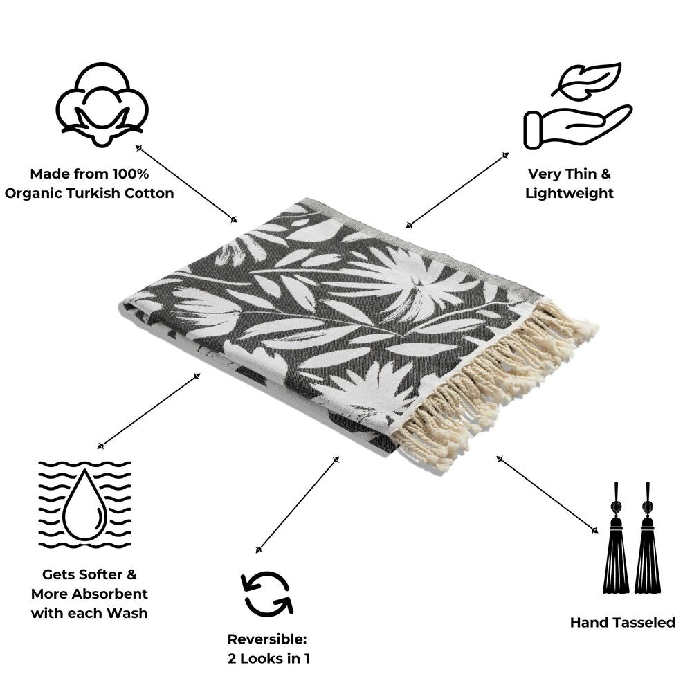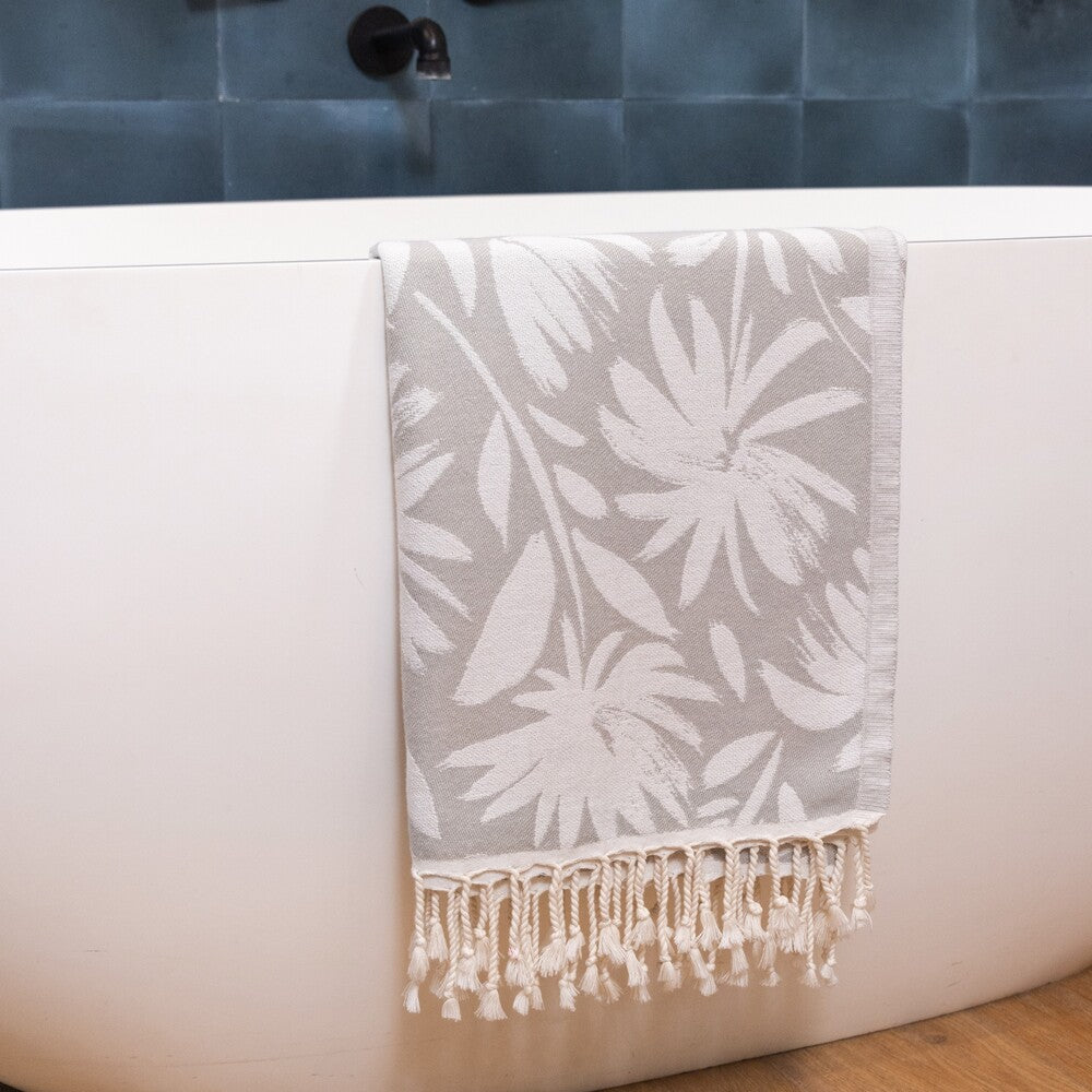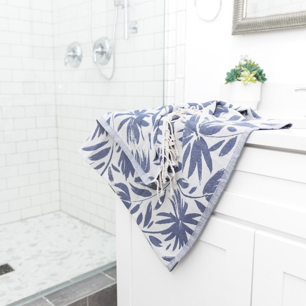 The ideal way to make a statement and add some color and design to any bathroom. This fun floral Turkish towel (thin with no terrycloth) is sure to brighten each day and become one of your favorite bath accessories!