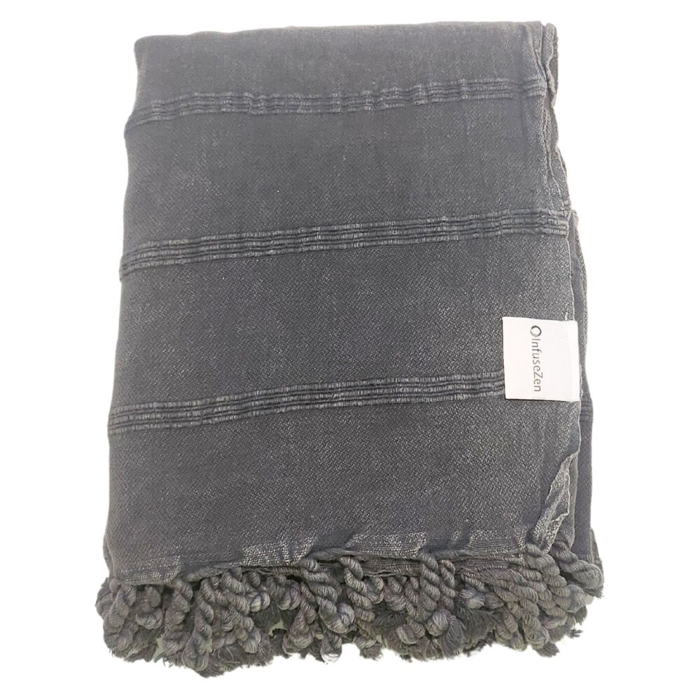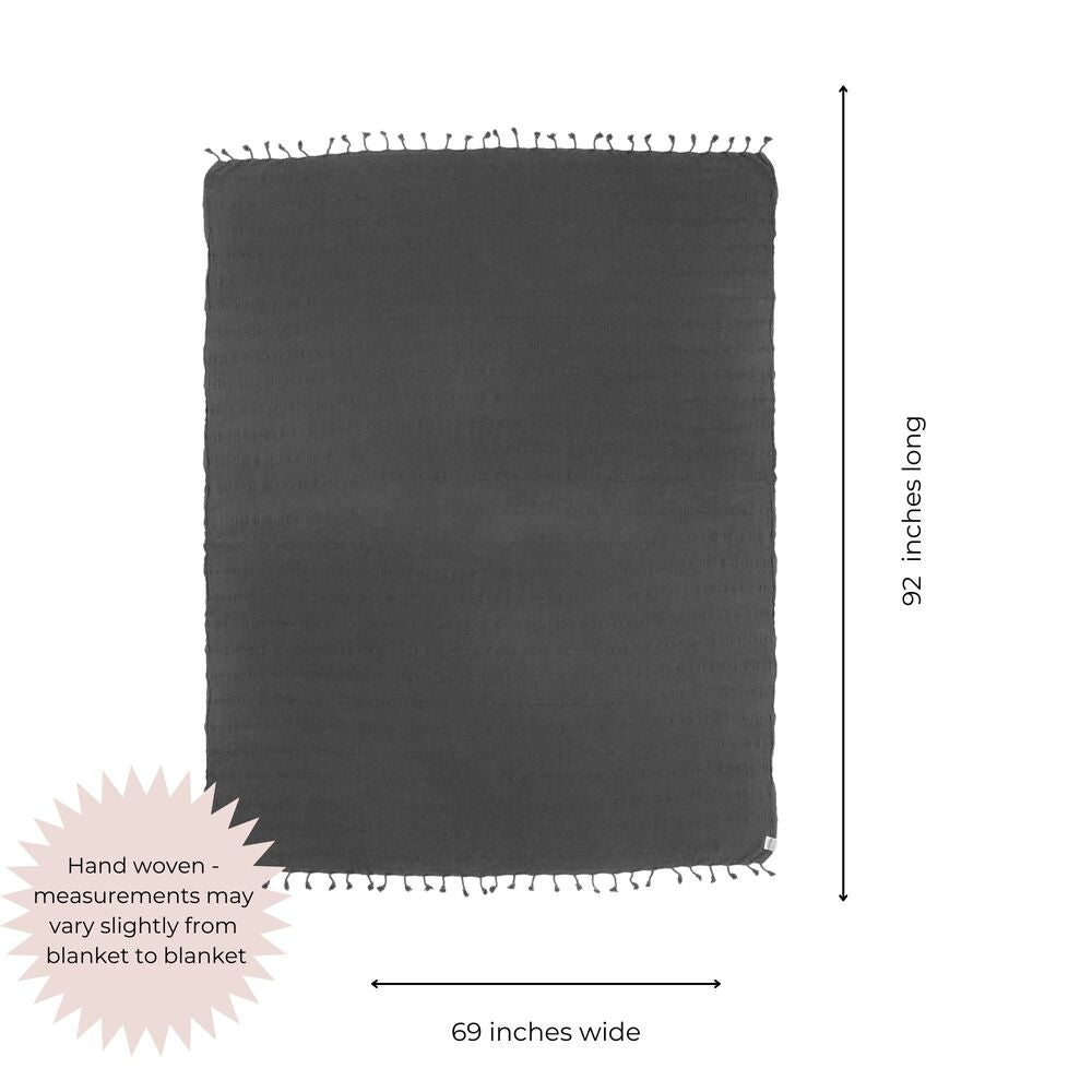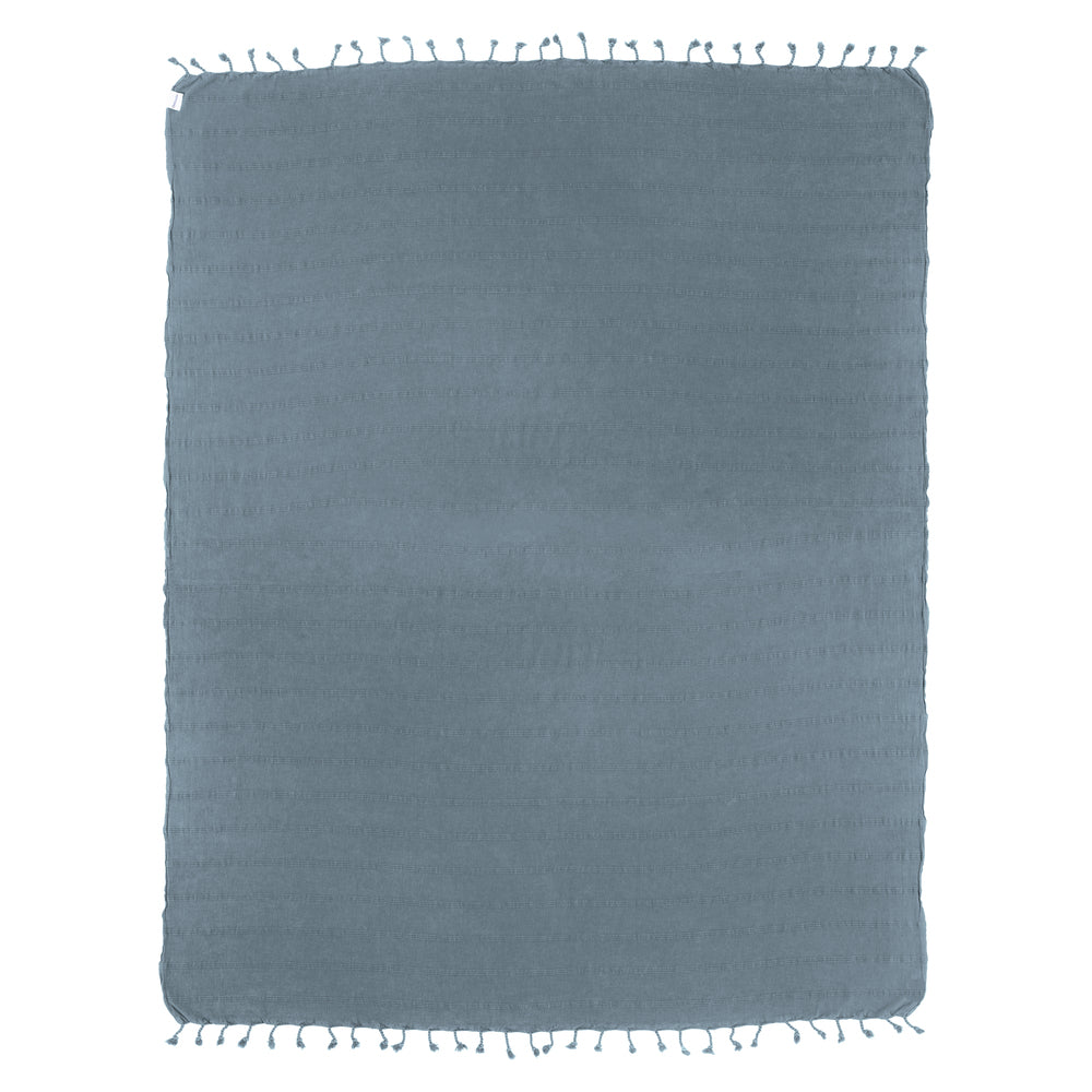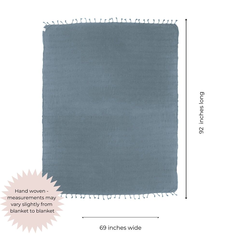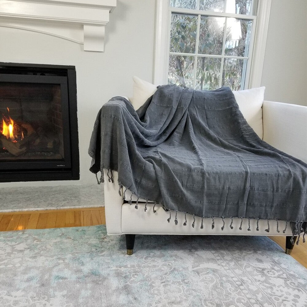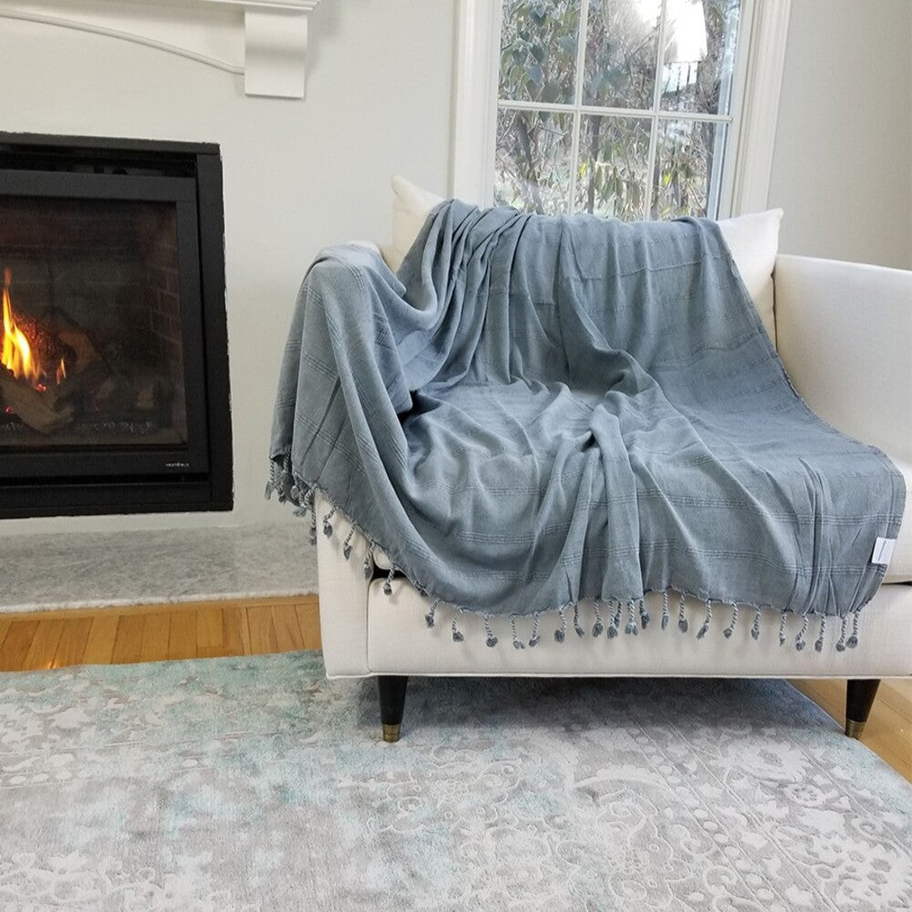 Cozy up to this large, thin, and lightweight stonewashed organic Turkish cotton throw blanket! Versatile enough to use year-round, it looks great in any style home decor. This blanket has been stonewashed, a process of washing with small stones after it's been dyed, to give it a broken-in look and softer feel.