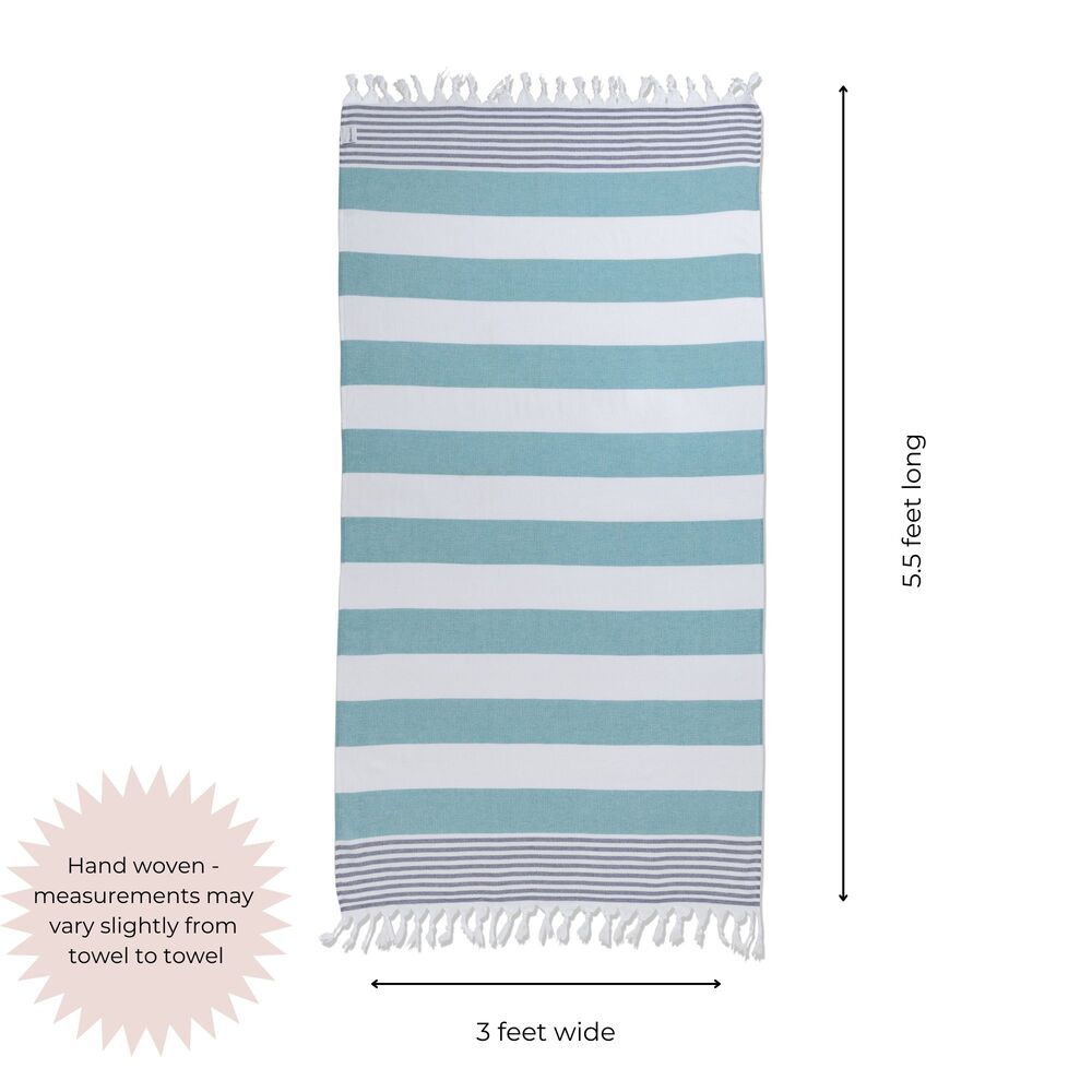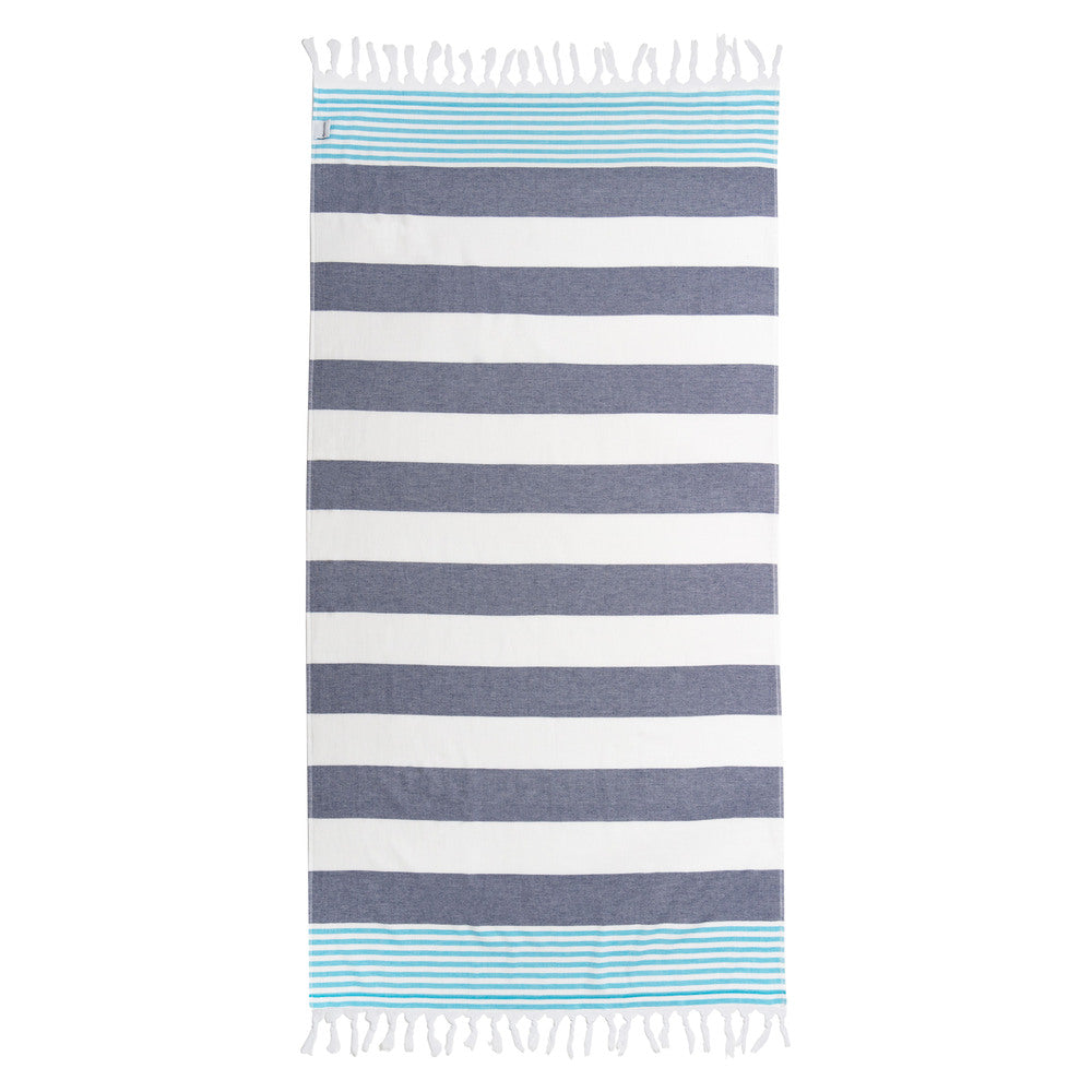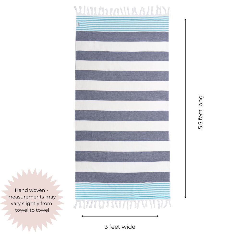 The ideal blend of tradition and comfort, the Marine Turkish Towel features a stylish striped flat-weave front and a soft terry cloth backing. This dual-textured towel brings together the lightweight, quick-drying properties of a classic Turkish towel with the cozy, absorbent qualities of terry cloth. Ideal for everyday luxury, this versatile towel is designed to offer durability and style, whether as a bath towel in your home, at the beach or pool, or on your next adventure!