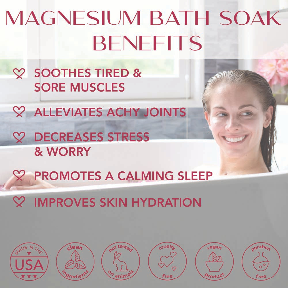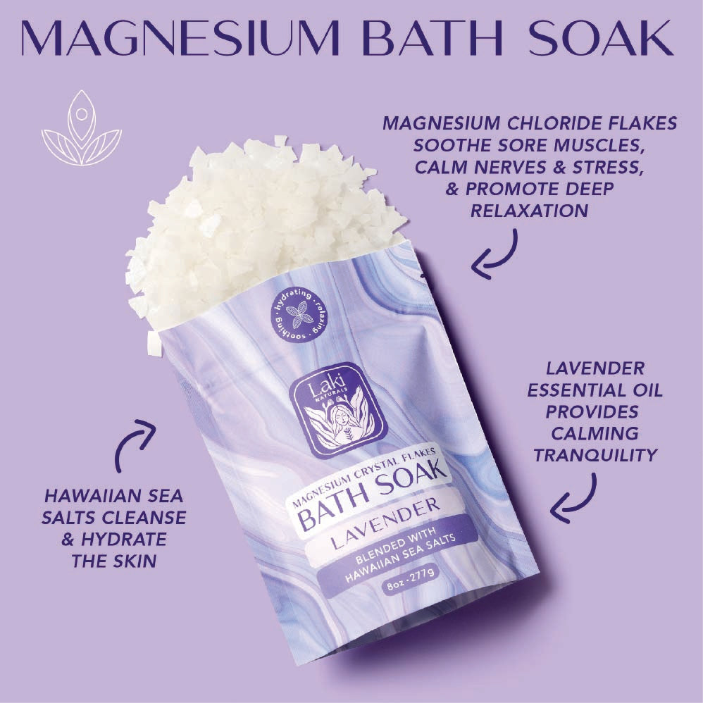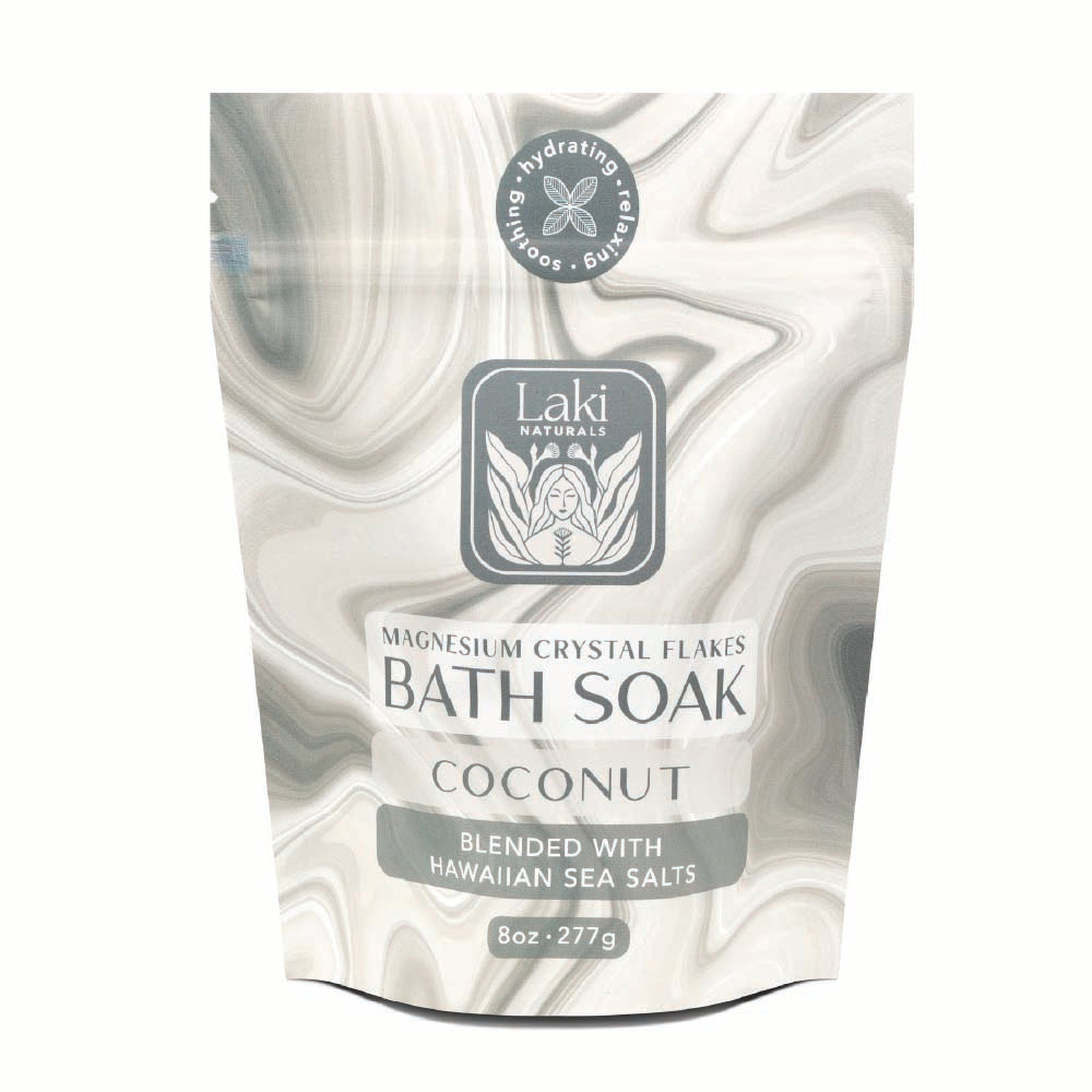 Let go and relax into the soothing, calming properties of magnesium flakes blended with hydrating Hawaiian sea salts, pure essential oils, and natural fragrances. This bath soak is formulated to help soothe sore and tired muscles, calm nerves, and promote deep relaxation.
