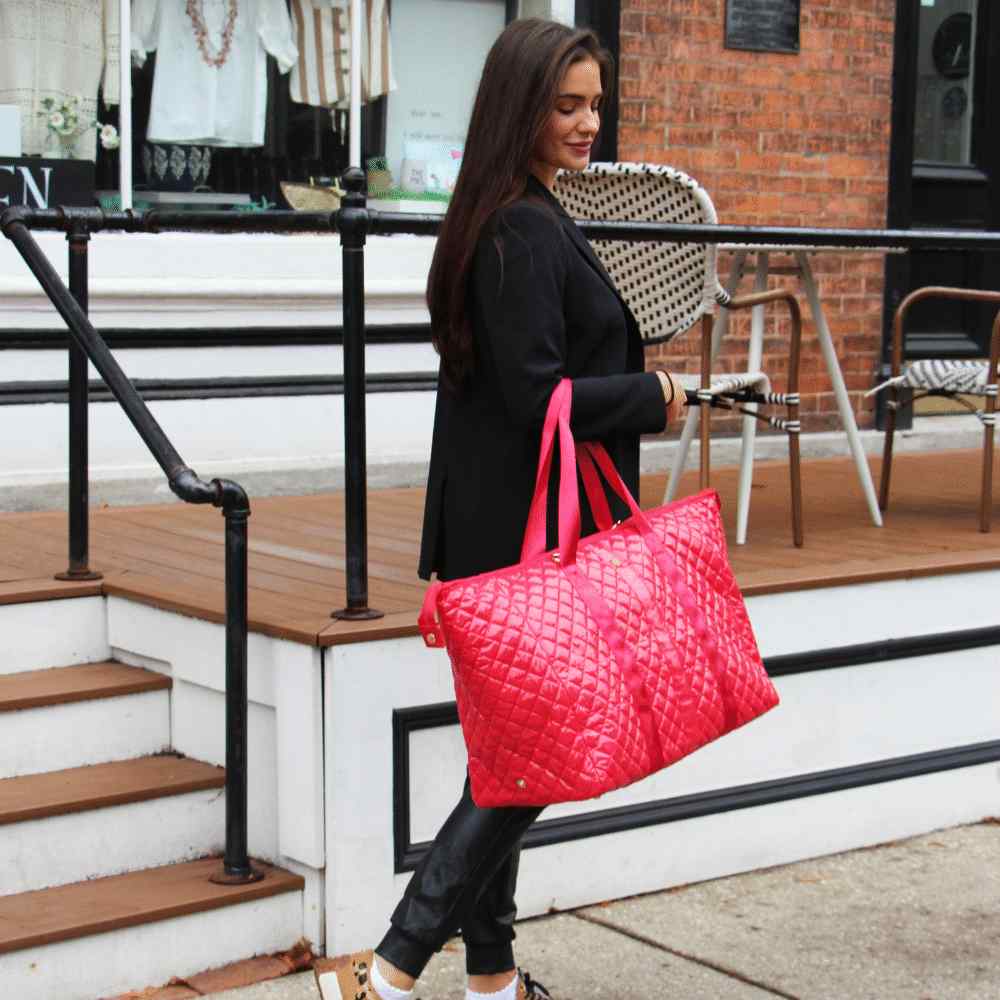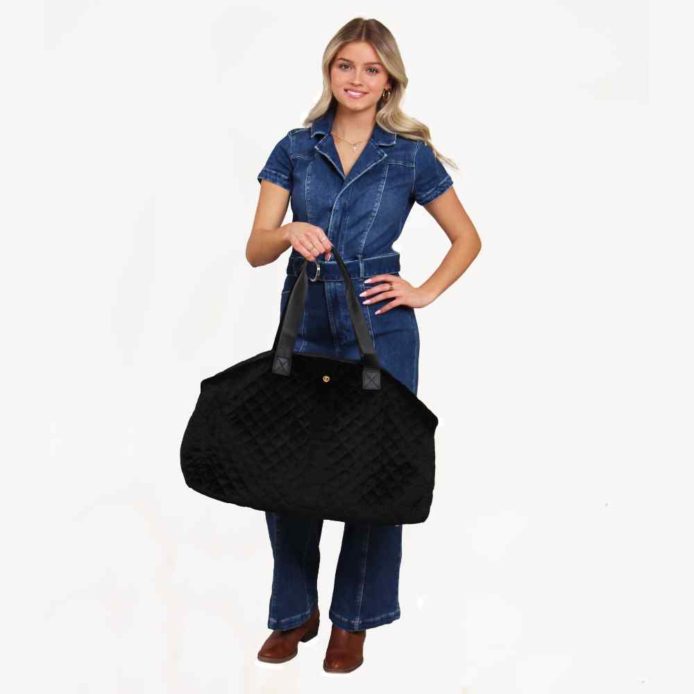 Elevate your travel experience with the Debra Diamond Weekender Bag, designed for modern travelers who value style and function. Ideal for weekend getaways or longer adventures, it keeps your essentials organized and easy to access. Use it as a tote, fold and snap it into a chic duffel, carry it with the shoulder handles, or use the adjustable crossbody strap.