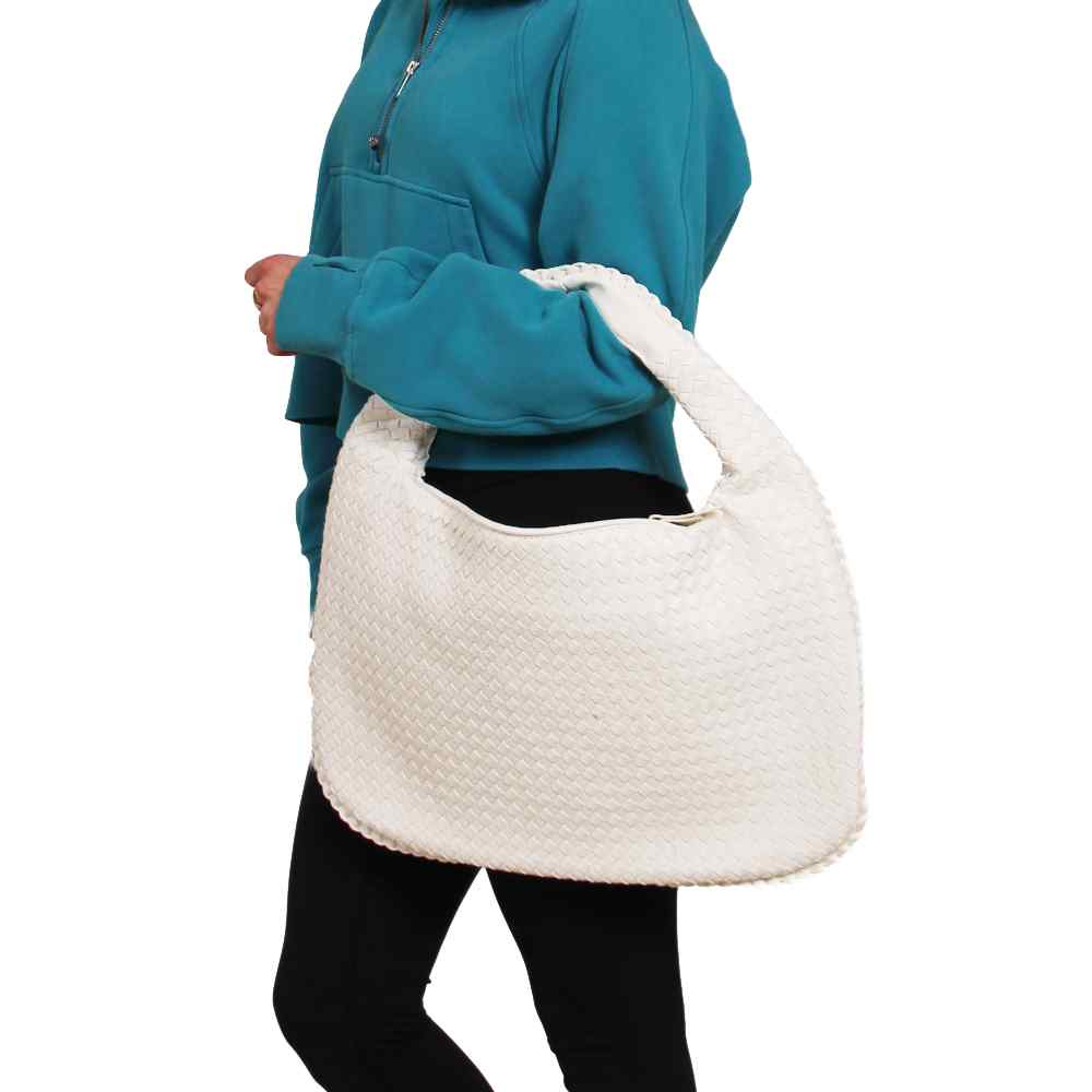 Introducing the Donna Woven Bindle Bag. This stylish bag features a convenient top zipper closure and interior zipper pocket, providing ample space for all your essentials. The Donna effortlessly drapes over your shoulder, making it the ideal accessory for everyday use.
