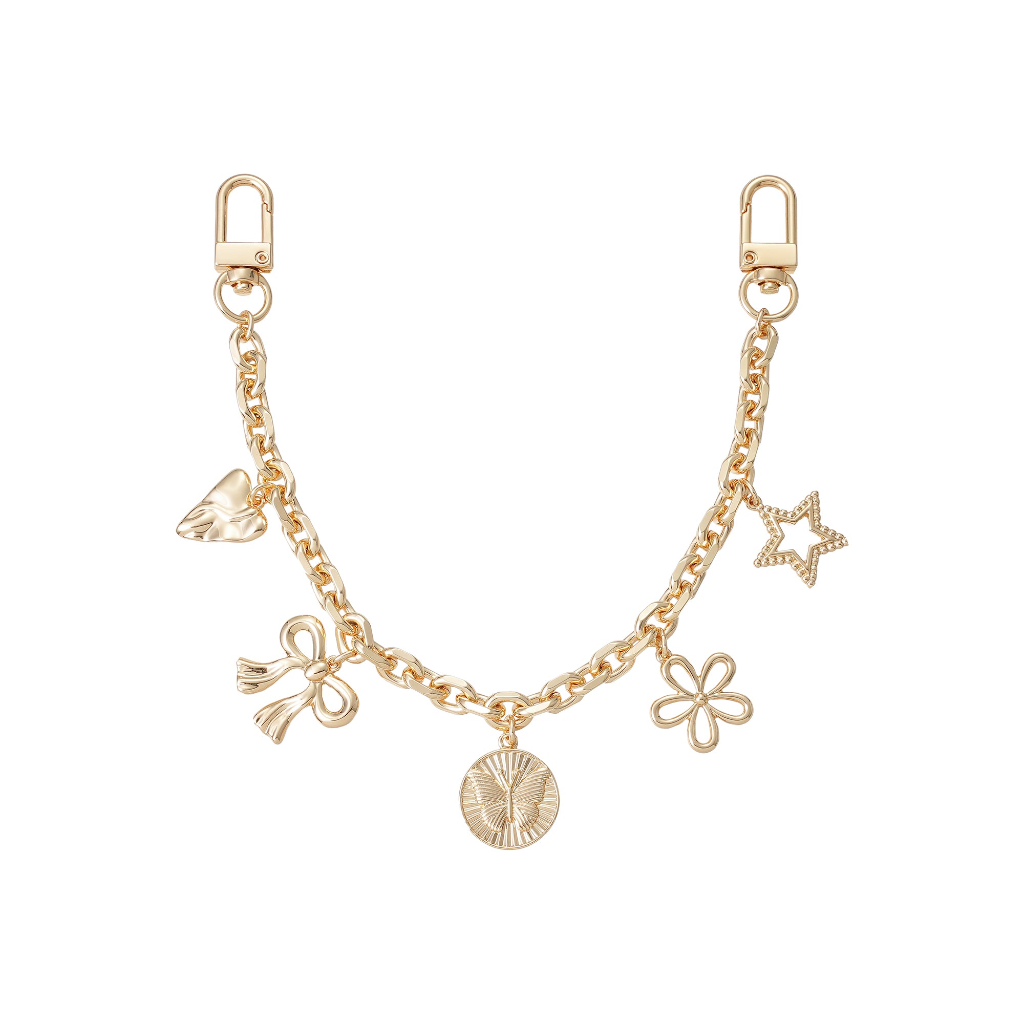 Designed to make an entrance. This bold bag charm clips to both handles for maximum impact, featuring a mix of iconic charms that bring edge, personality, and polish to any bag.