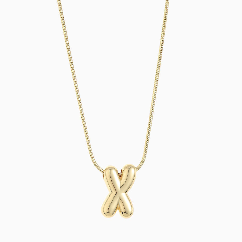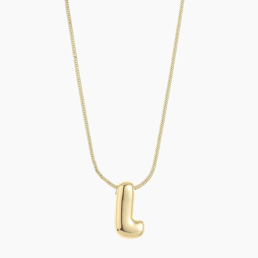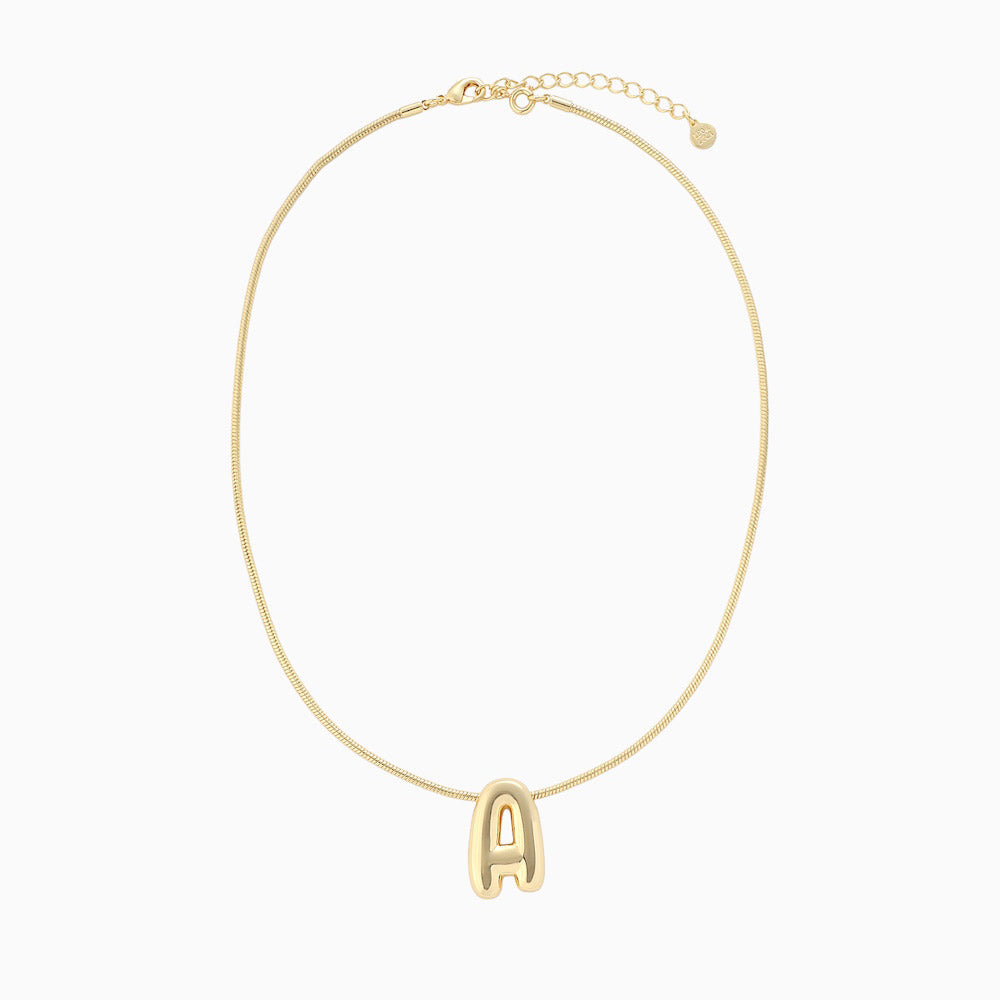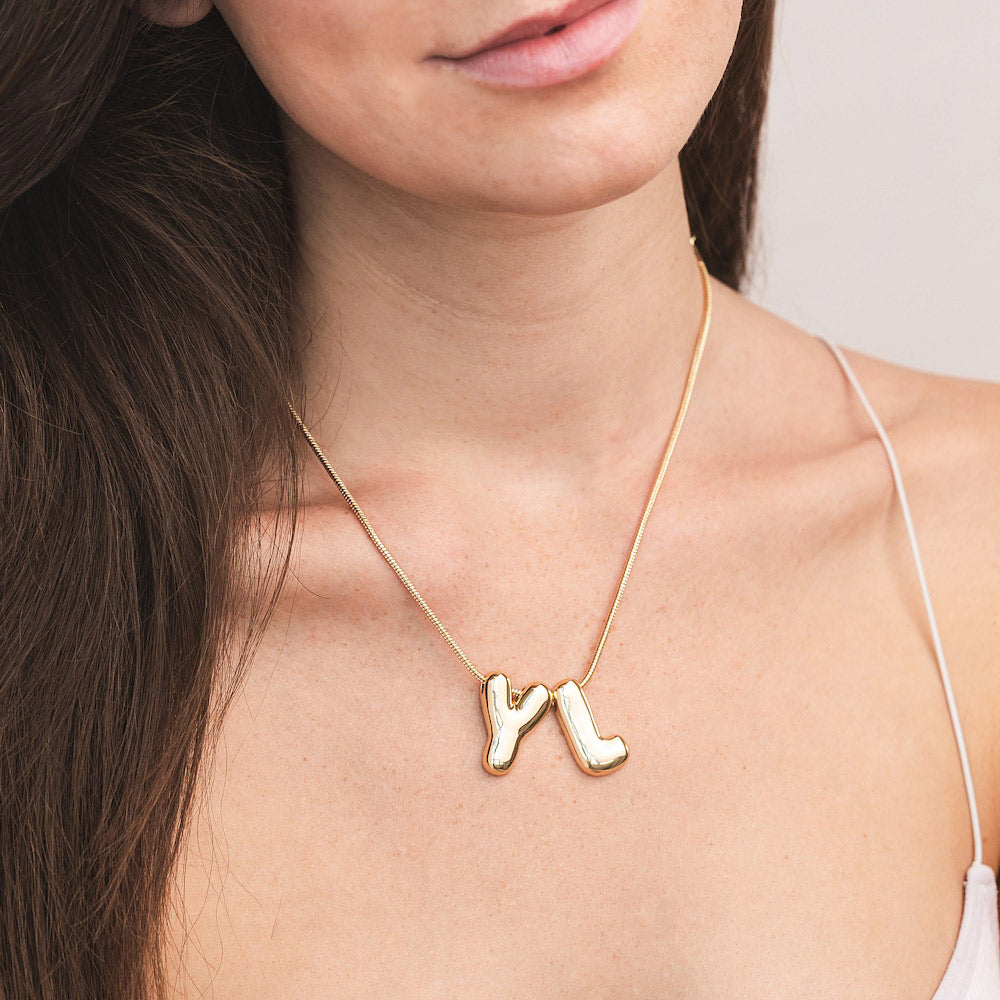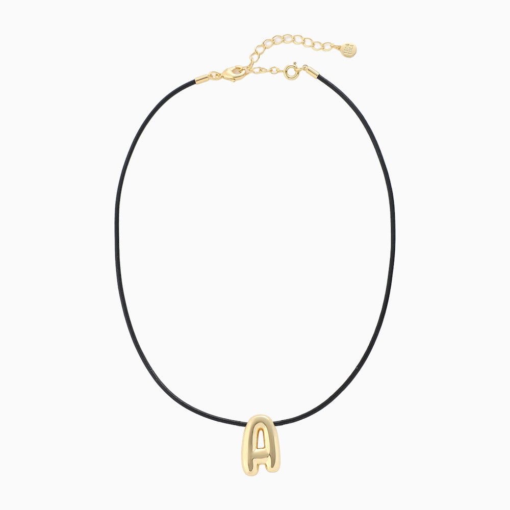 Make a bold statement with the Large Balloon Initial Necklace, crafted from 18K gold-plated brass. This piece features an interchangeable black cord and gold snake chain, both complete with extenders for versatility. Whether worn solo or layered, this necklace easily adapts to your style. It’s the ideal addition for adding a touch of personalization to any look.