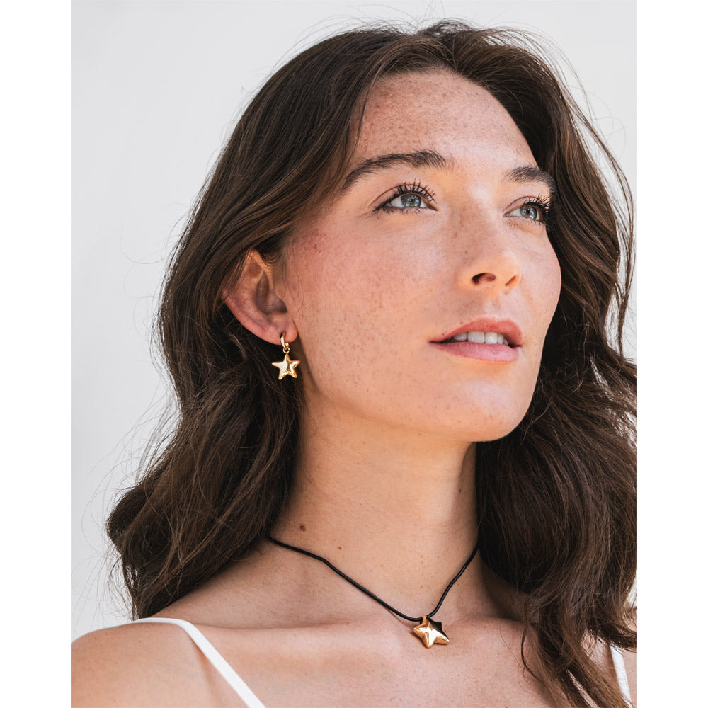 The Midnight Star Necklace features a bold, high-polish gold-plated puffed star with a fresh, fashion edge. Strung on a sleek black cord, it’s effortlessly cool—ideal solo or layered.
