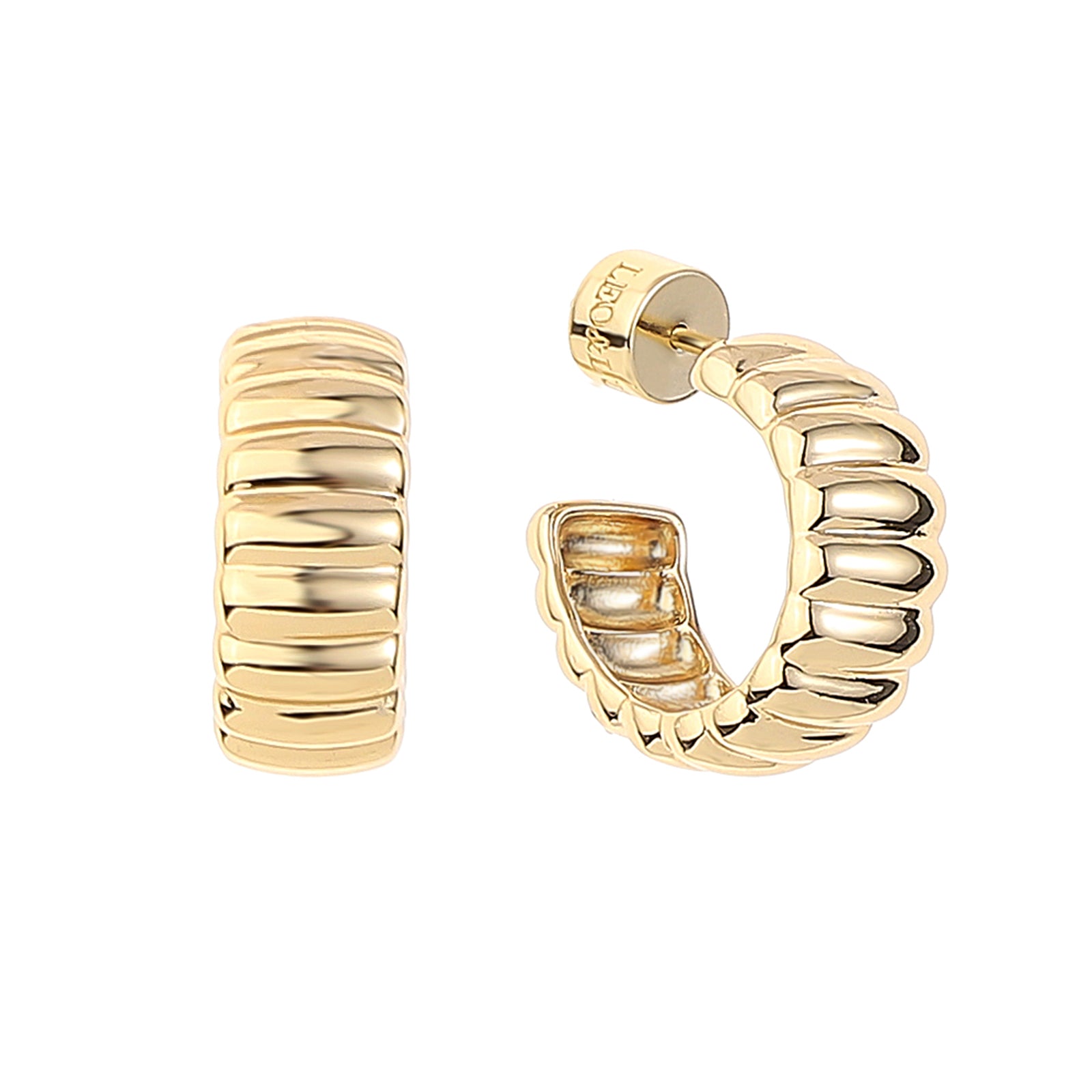 Add a touch of uniqueness with the Ribbed Hoop Earrings. These finely crafted hoops feature simple ridges, creating a subtle yet elegant look. With a wider stance and smaller build, they’re lightweight and ideal for a night out. Elevate your style with these one-of-a-kind earrings.
