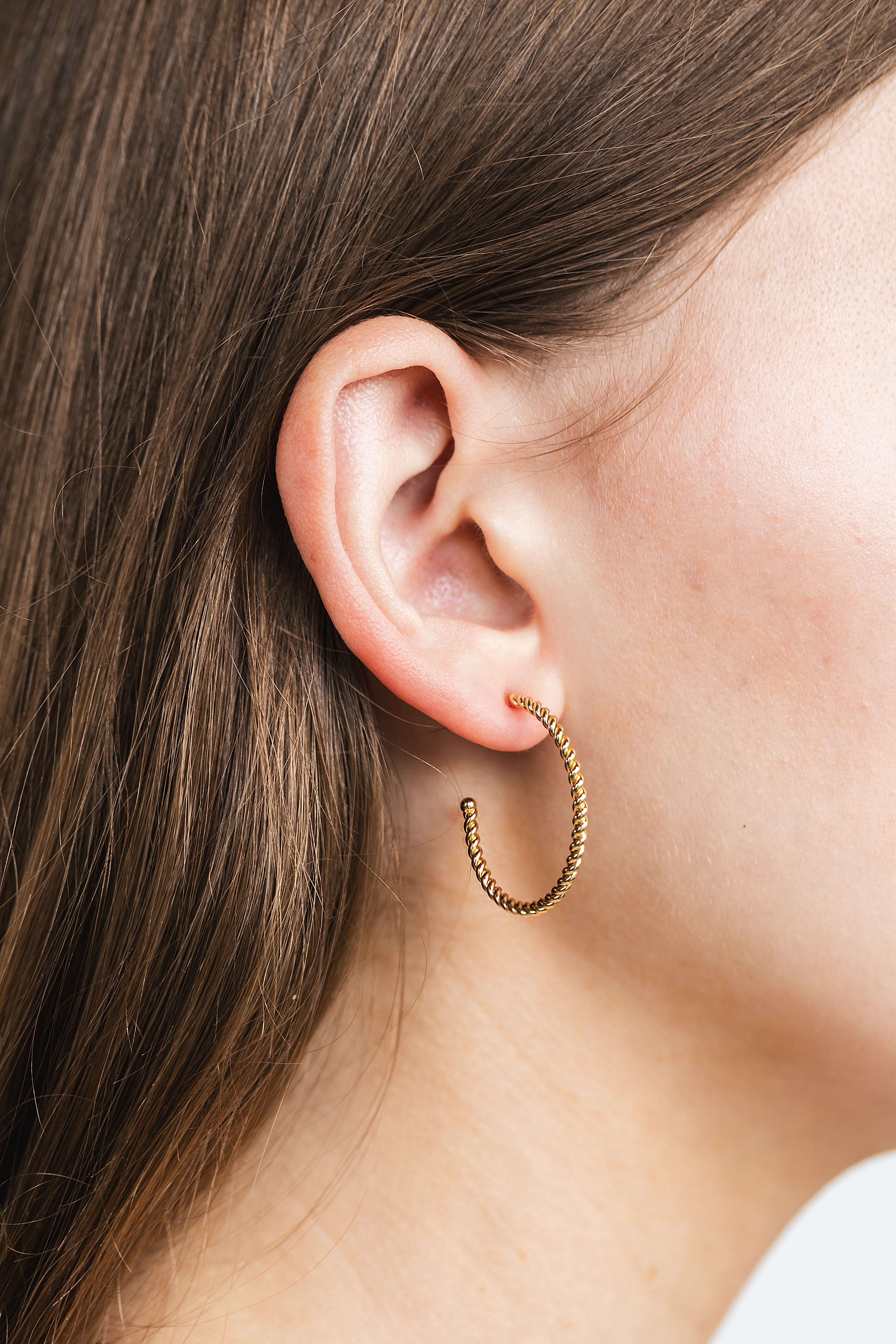 Crafted in 18K gold-plated brass, these bold twisted hoops bring shine and texture to any look. Oversized yet effortless, they’re sure to be your go-to hoops for instant glam.