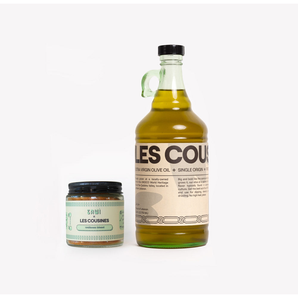 Bridge wellness, heritage, and convenience with this thoughtfully crafted duo. Inspired by the Mediterranean ritual of taking a morning olive oil shot, this bundle combines Les Cousines Extra Virgin Olive Oil with the Zawi x Les Cousines Wellness Blend—a spice mix designed to transform your morning routine into a moment of nourishment and renewal. Rooted in centuries-old tradition and reimagined for today’s wellness lifestyle, it’s a simple, authentic way to start your day with intention.