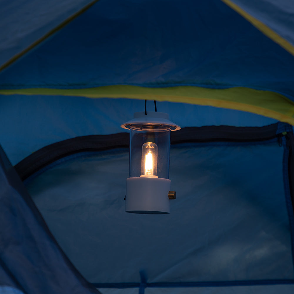 Enjoy the illumination of warm white light with this easy-to-use, dimmable LED lantern. Its retro-style filament LED delivers an old world glow combined with the latest technology. This lantern comes in three colors (white, black, and teal), and you’ll receive a random color assortment.