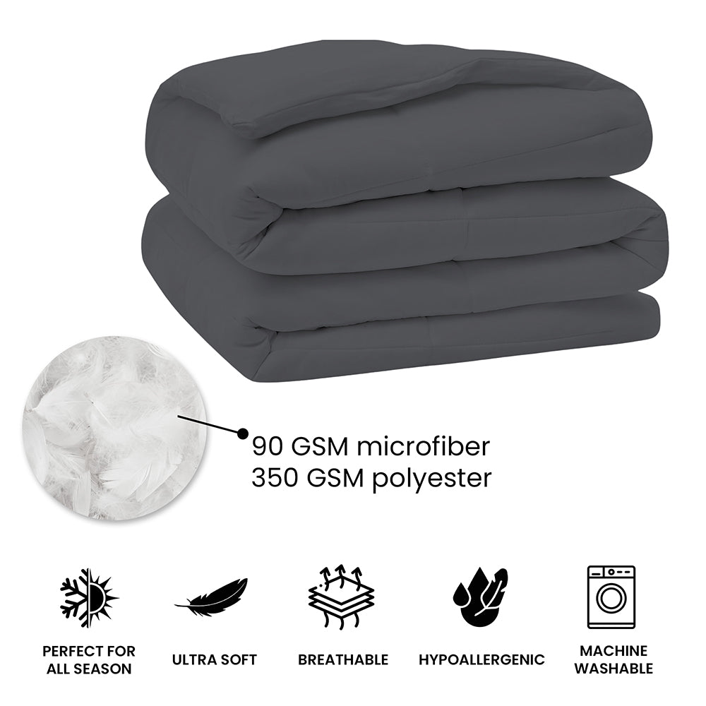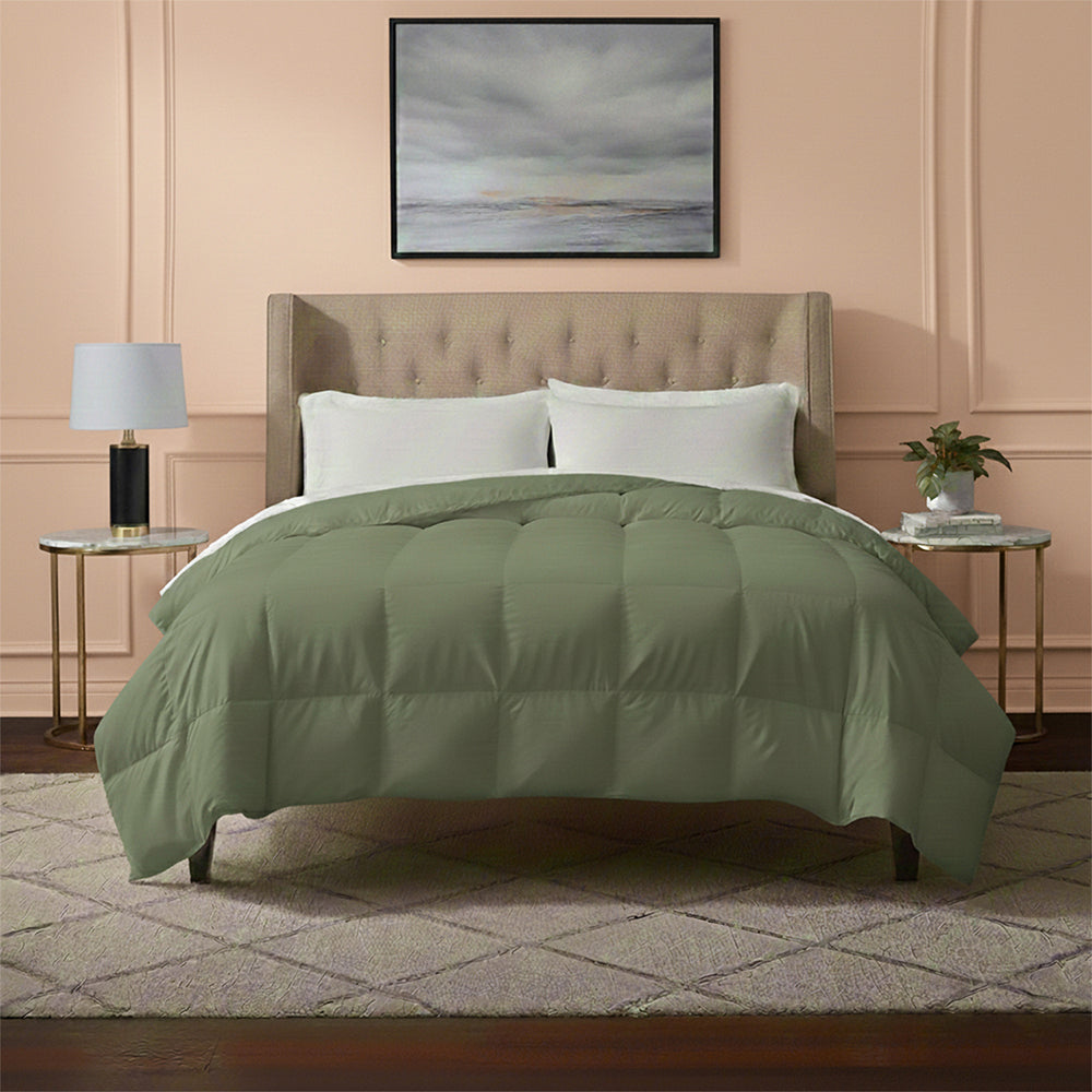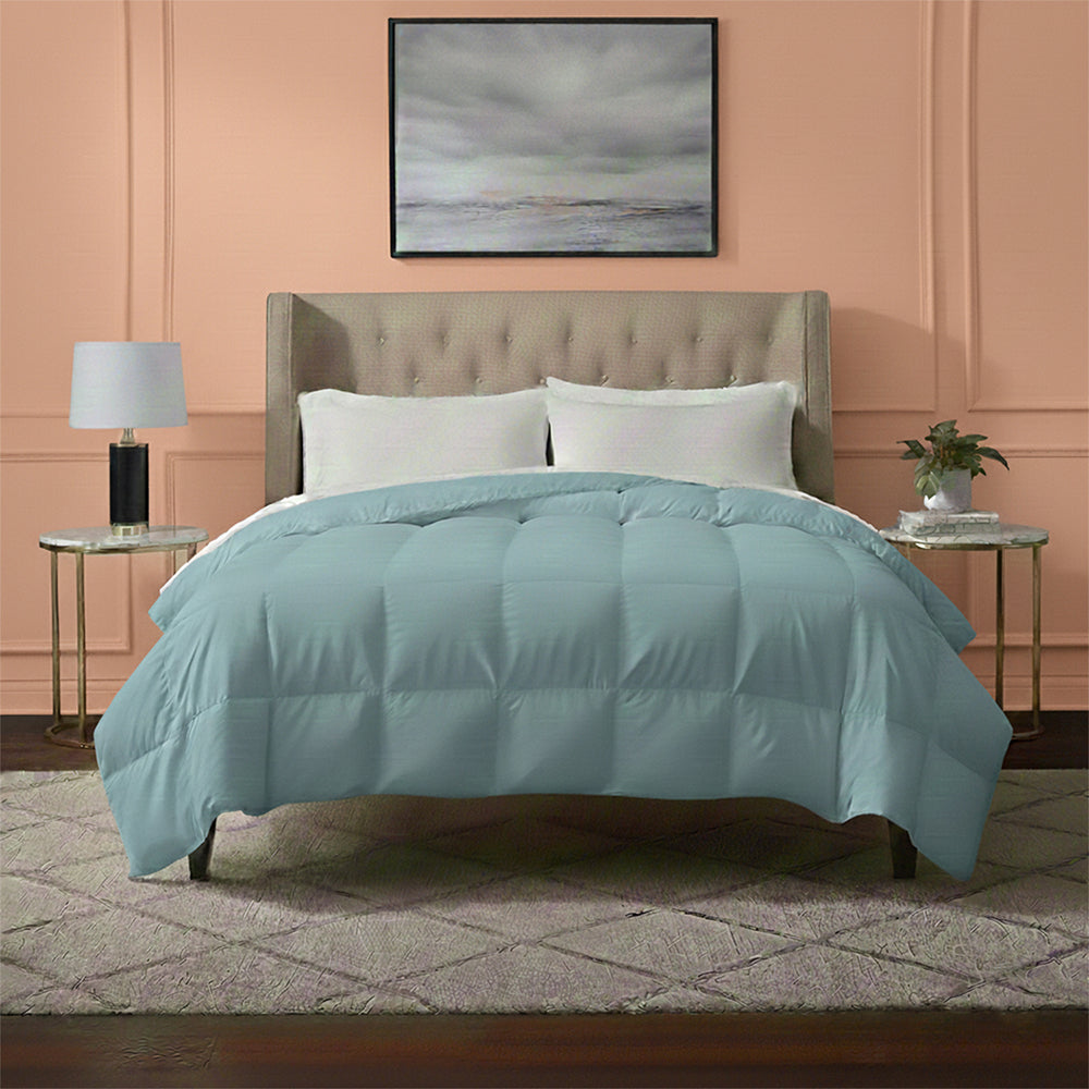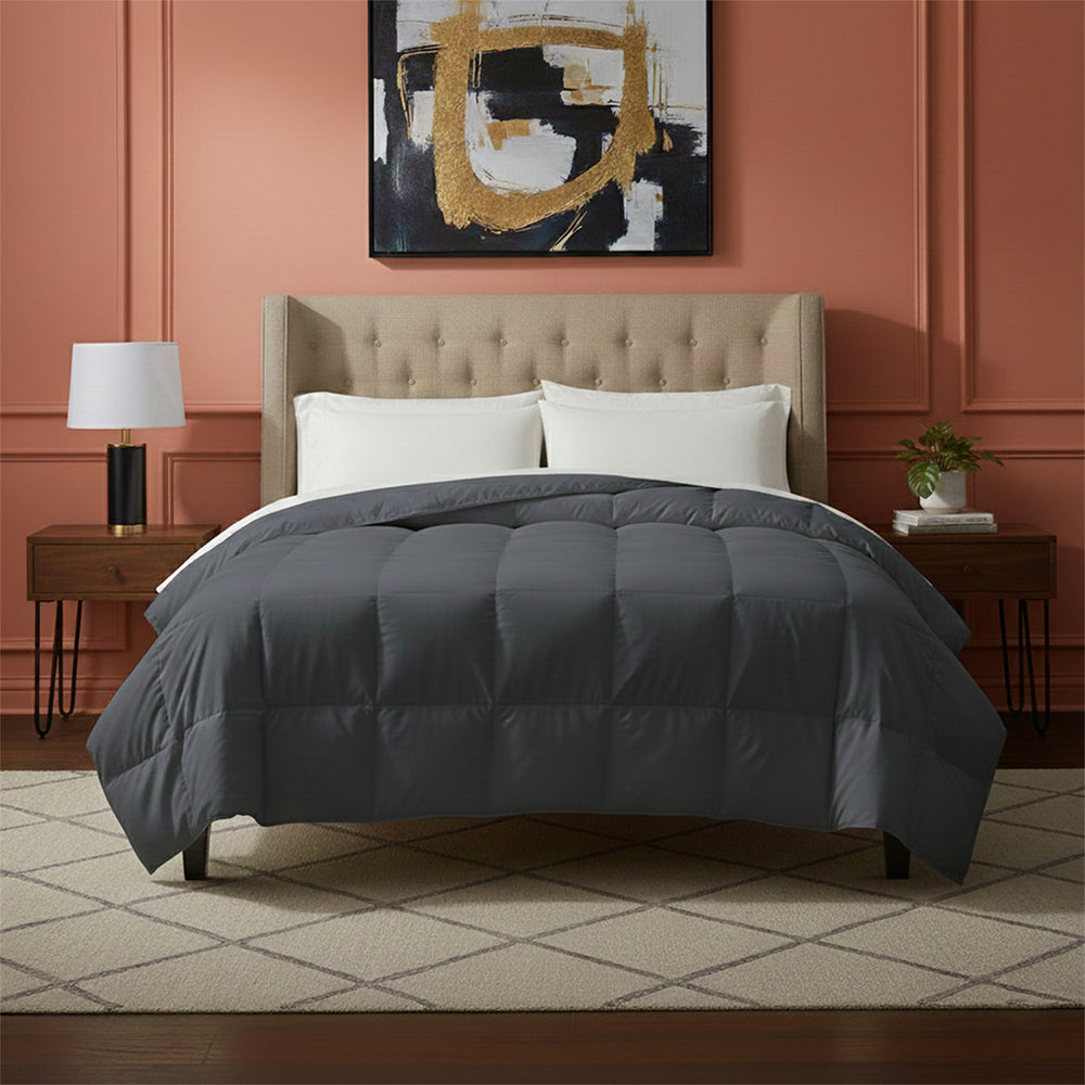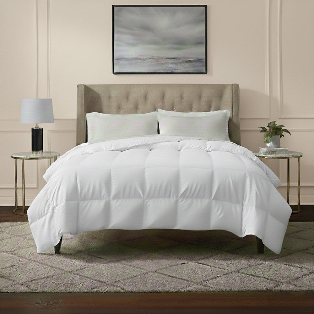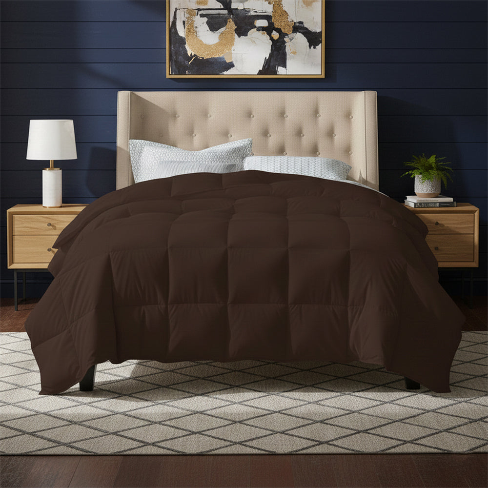 This all-season down alternative comforter features an ideal loft and down-like feel to keep you warm and toasty while you sleep. Designed for healthy living and 100% hypoallergenic for allergy sufferers, this luxury comforter features end-to-end baffle box construction, preventing fiber from shifting and eliminating the need for regular fluffing.
