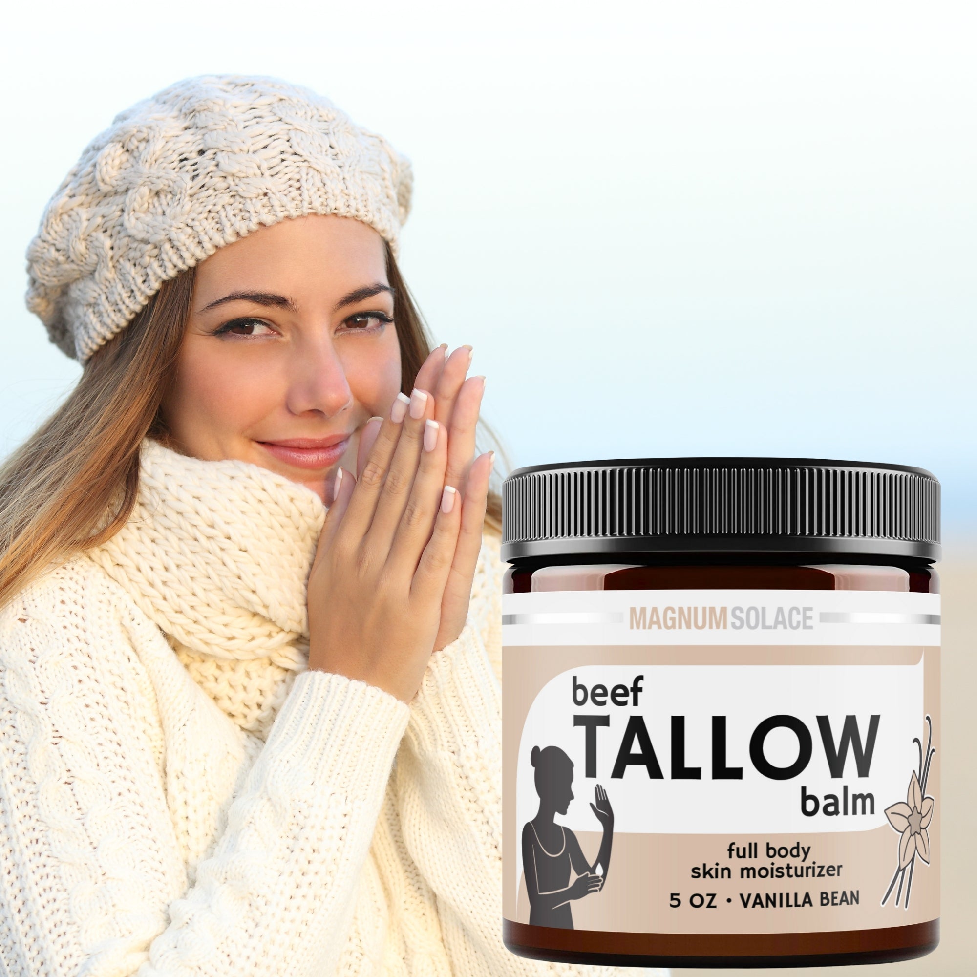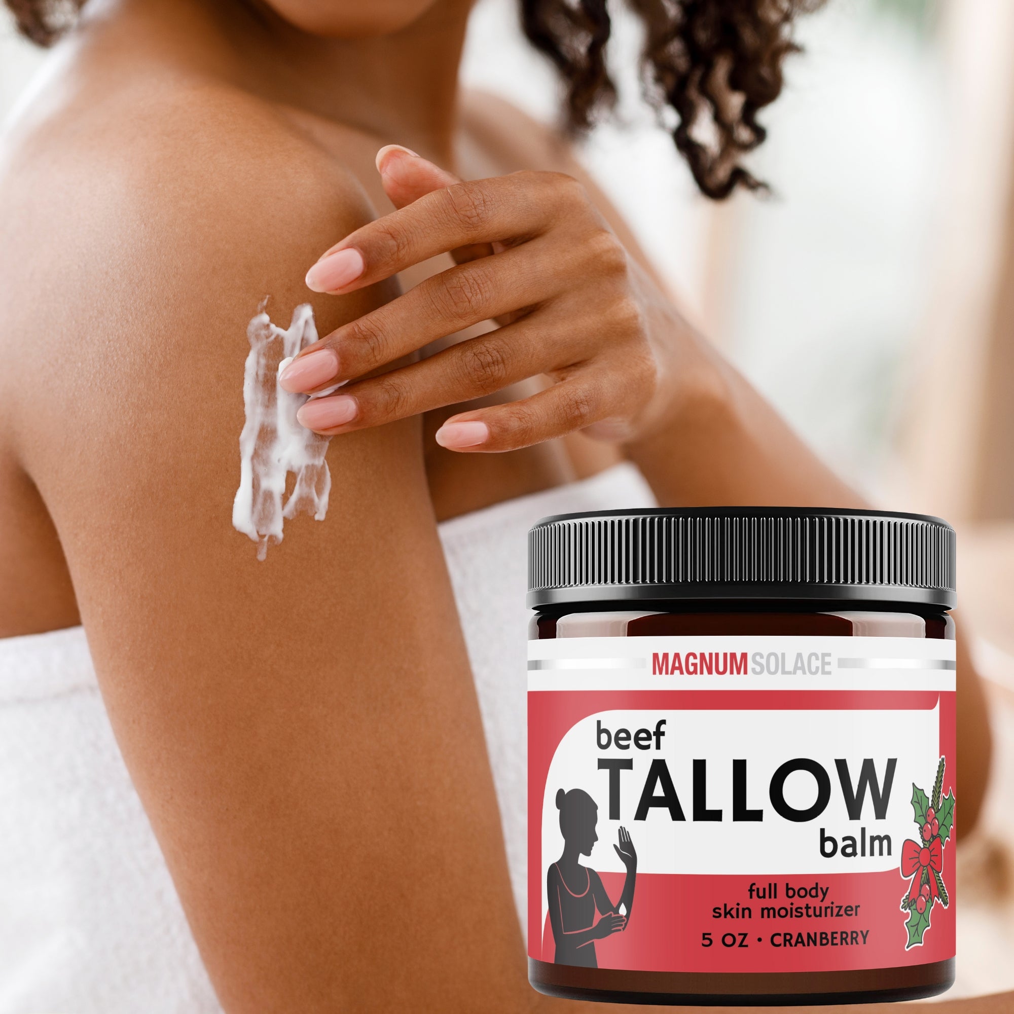 Get into the mood of the season with ultra-hydrating, limited-edition fall scents of Beef Tallow Balm. Finally a whipped, creamy beef tallow balm ideal for dry, sensitive skin. Combined with almond oil, this balm is small-batch formulated for a light, non-greasy, smooth application. Beef Tallow Balm helps rehydrate and restore those extra-dry spots anywhere on your body—face, hands, elbows, and feet.