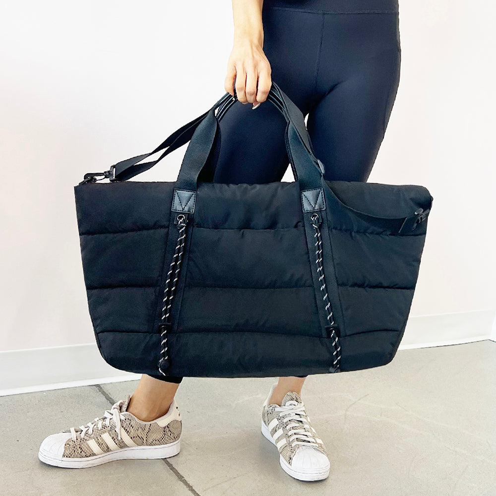 Your all-in-one lifestyle bag. From yoga to your daily routine, this bag has built-in straps that securely hold your yoga mat for easy transport and convenience.