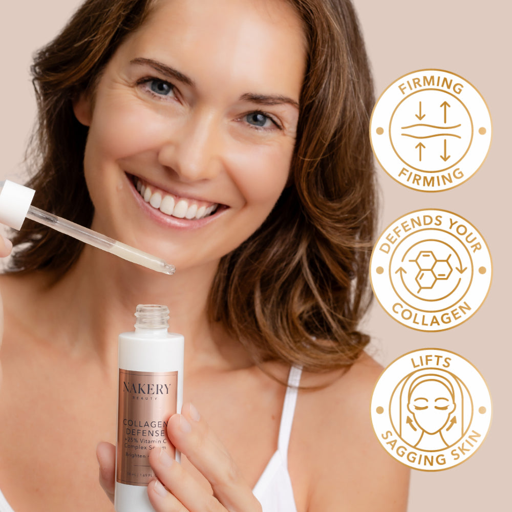 Collagen Defense + 25% Vitamin C Complex Serum combines three forms of vitamin C that work on the surface, deep within, and continuously throughout the day to brighten, protect, and stimulate collagen. Paired with other powerful ingredients, it targets dark spots, sun damage, sagging, and lines at multiple levels. This serum defends today while building the collagen of tomorrow.