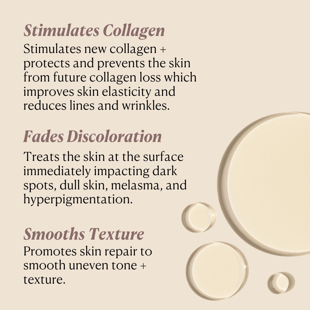 - Stimulate new collagen and protect and prevent skin from future collagen loss